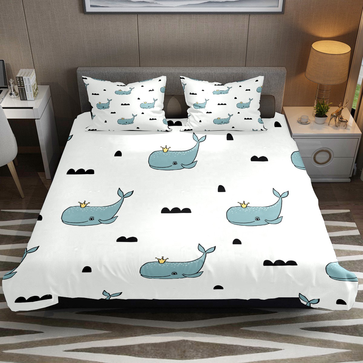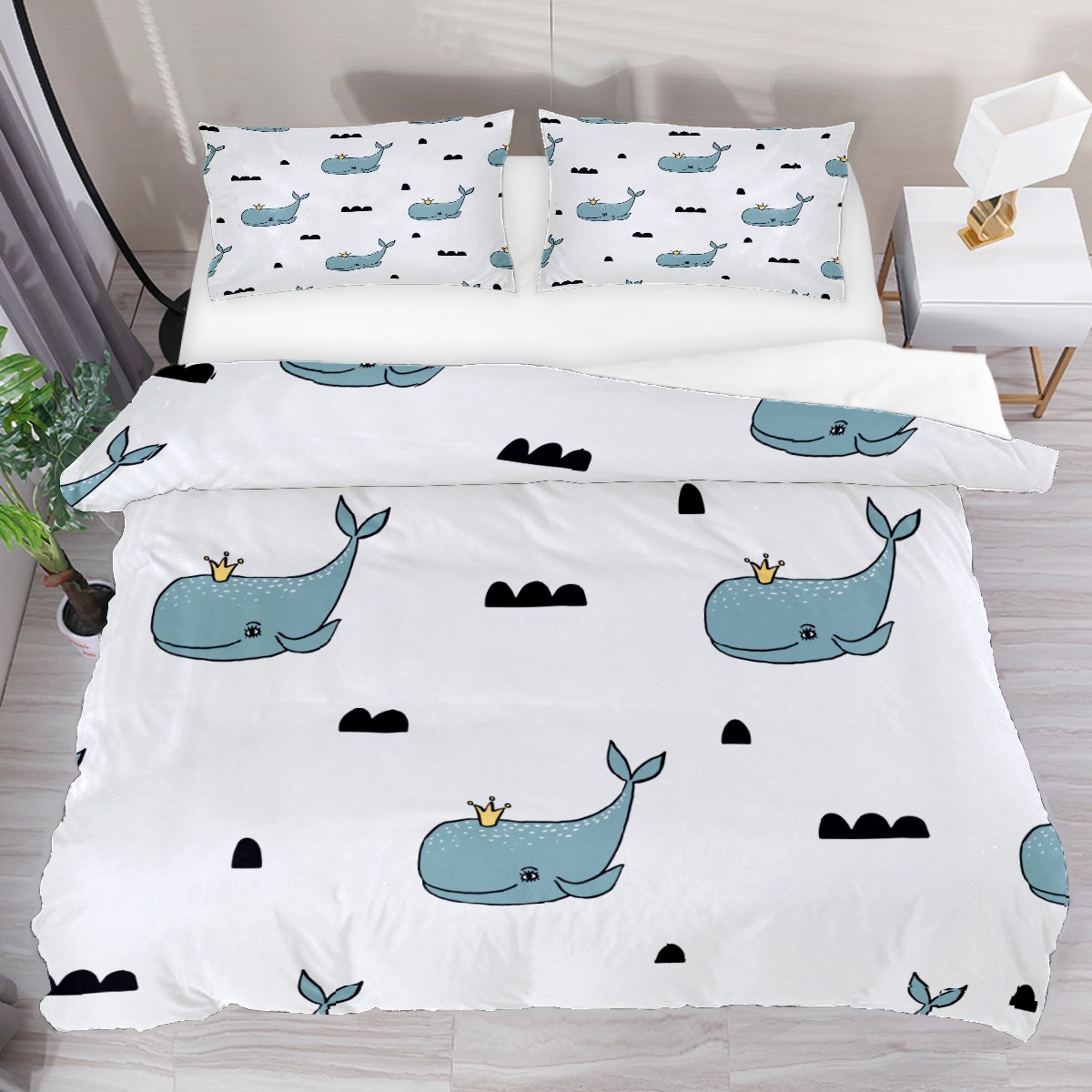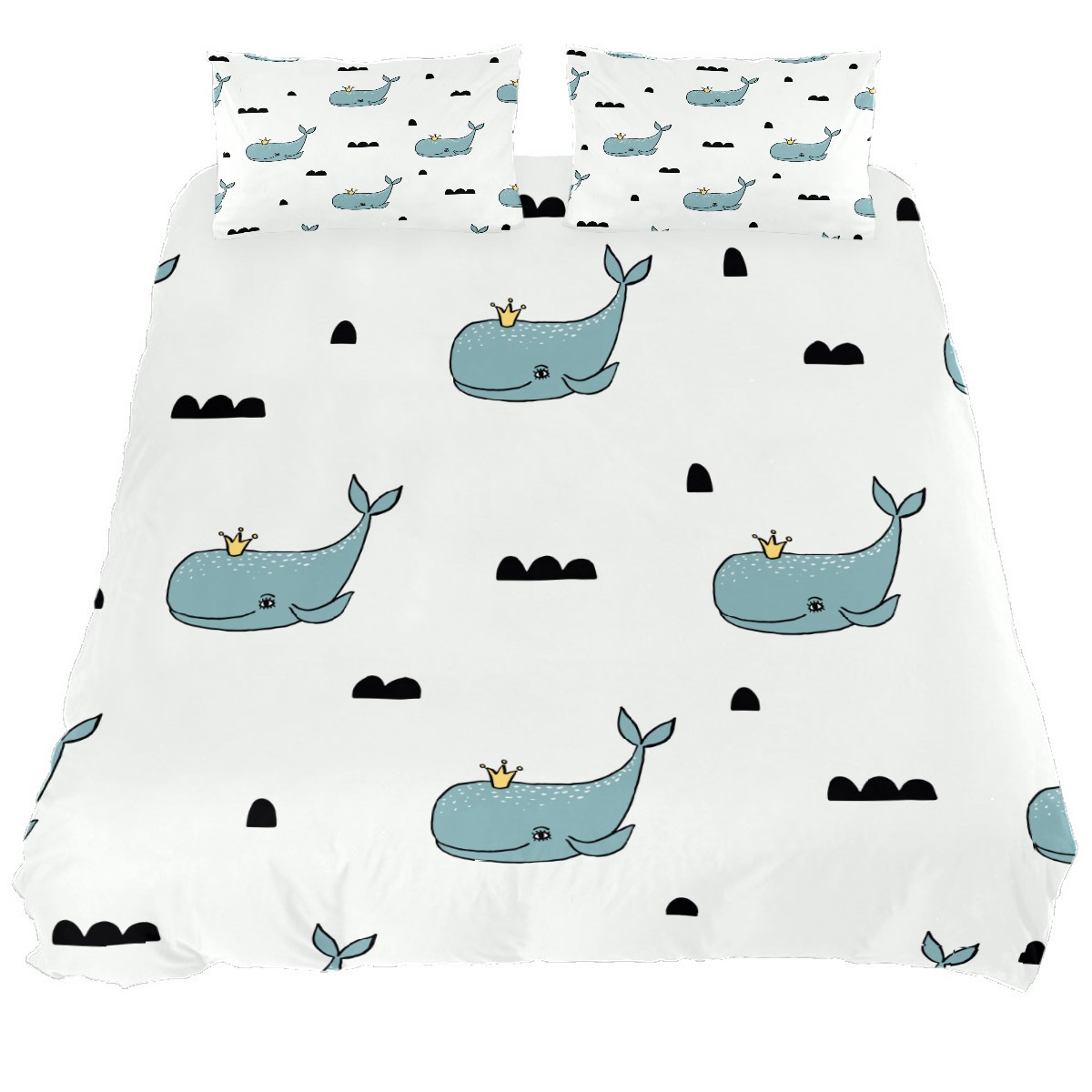 Duvet Cover Twin Cute Whale With Crown 3pcs Bedding Duvet Cover Set Modern Quilt Cover Microfiber Comforter Cover with Button Closure with 2 Pillow Cases 1 Duvet Cover