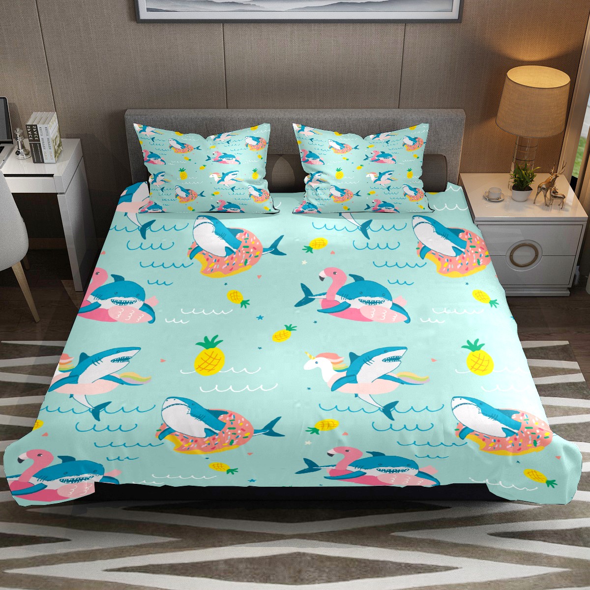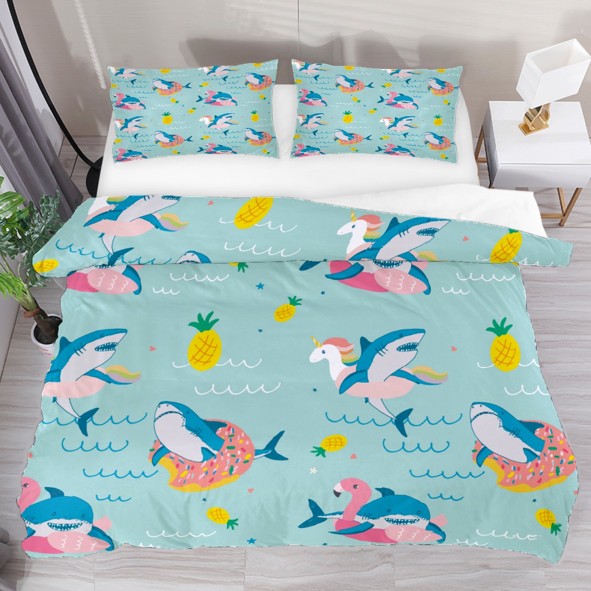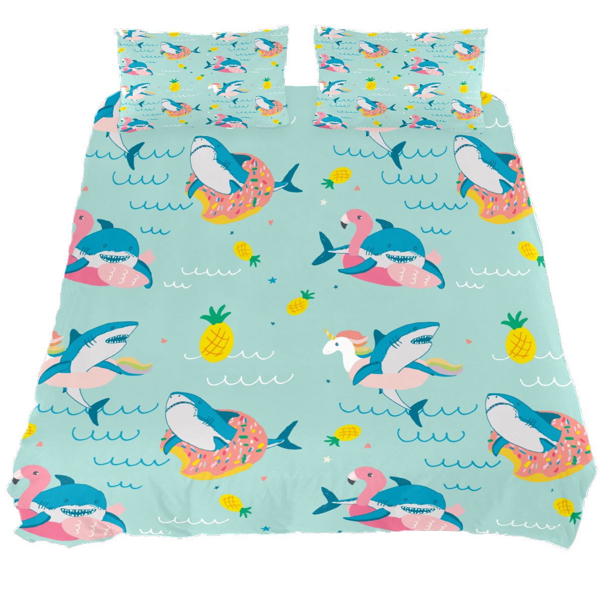 Duvet Cover Twin Cute Shark With Swim Rings Pineapple Summer 3pcs Bedding Duvet Cover Set Modern Quilt Cover Microfiber Comforter Cover with Button Closure with 2 Pillow Cases 1 Duvet Cover
