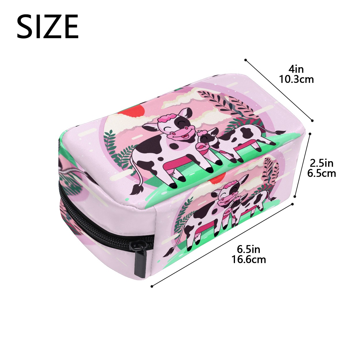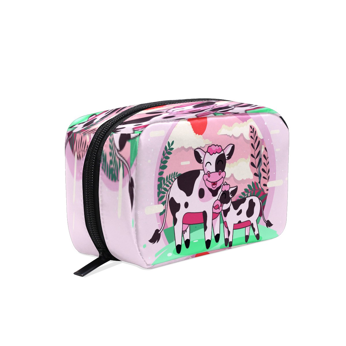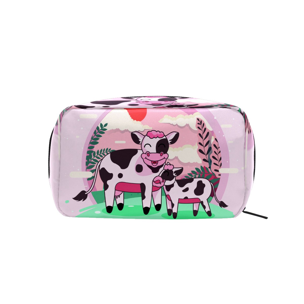 Cosmetic Bag for Women Girls Trave Makeup Bag Toiletry Case Pouch Accessories Organizer Cute Funny Carton Cow Mom With Baby