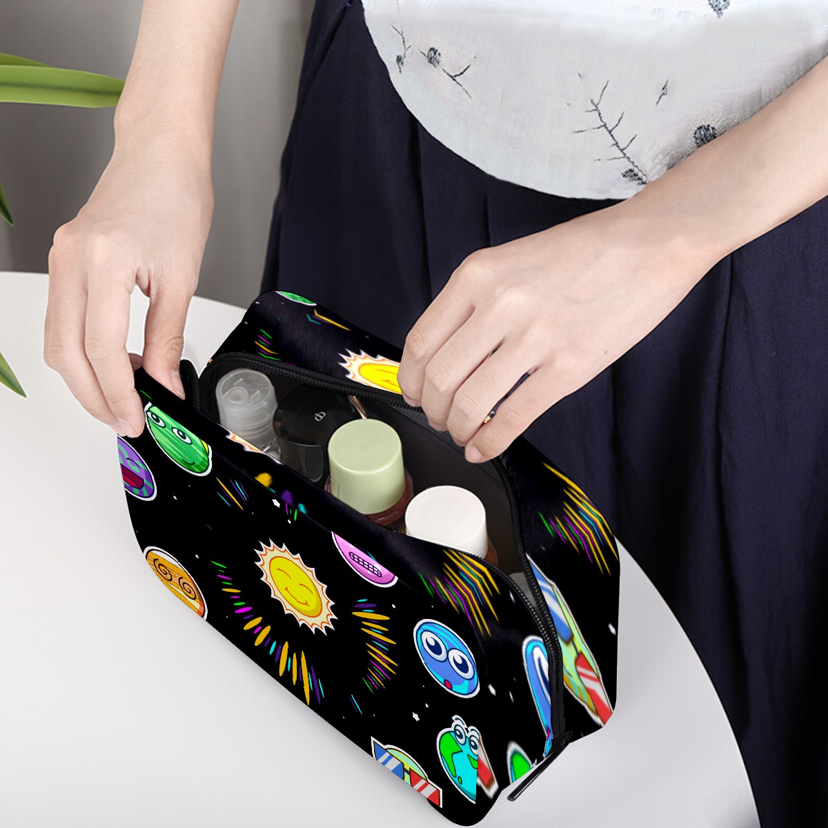 <p><br /></p><p><b>Cosmetic Bag Toiletry Travel Makeup Case Pouch Multi-function Organizer for Women</b></p><p><b>Size:</b> 6.5 x 4 x 2.5 inches(LxWxH) / 16.6 x 10.3 x 6.5 cm</p><p><b>Material: </b>Twill Weave + Elastic Band</p><p><br /></p><p><b>Features:</b></p><p><br /></p><p>- High Quality:These makeup bags are Lightweight, Durable, Waterproof and made out of Light and Twill Weave. Size: 8" x 2.5" x 5.5" / 20.3 x 6.35 x 14cm (LxWxH)</p><p><i>- </i>Multiple compartments for different requests of storage: Have 1 main compartment and 2 lipstick pockets and 3 inner pockets, convenient to store your lipstick, brushes, eyebrow pencils, mascara, air cushion and powder</p><p><i>- </i>Multifuncation: Each makeup bag have One Main Bag and five Compartments, can hold your Lipstick, tweezers, eyebow pencils, perfume£¬brush or other grooming items in place,good for sorting cosmetics and it's easy to find the items you need.</p><p>- New Design:Simple, compact and lightweight design is easily held in handbag.With High-quality Zipper,nice stitching and sewing ensure smooth opening and closing</p><p>-The travel makeup case, also can be a travel toiletry bag, electronic accessories bag, small camera bag, suitable for taking exactly what you need, anywhere, at any time</p><p><b>If you have any question, please feel free to contact us!</b></p><p><br /></p>