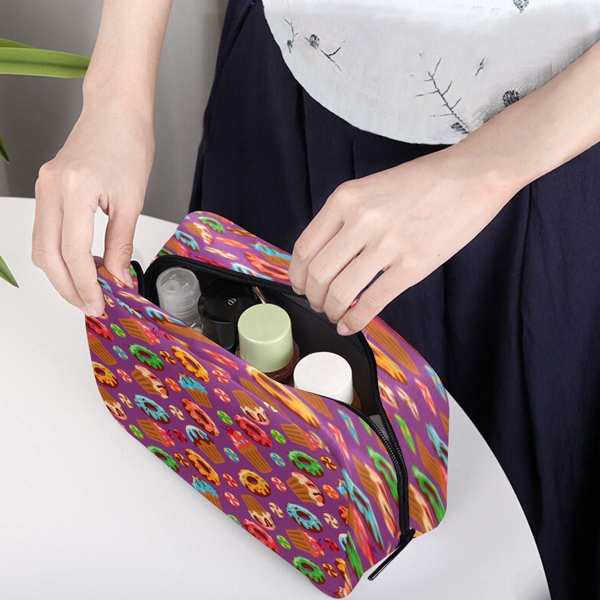 Cosmetic Bag for Women Girls Trave Makeup Bag Toiletry Case Pouch Accessories Organizer Cute Cartoon Sweet Candy Donuts Pattern