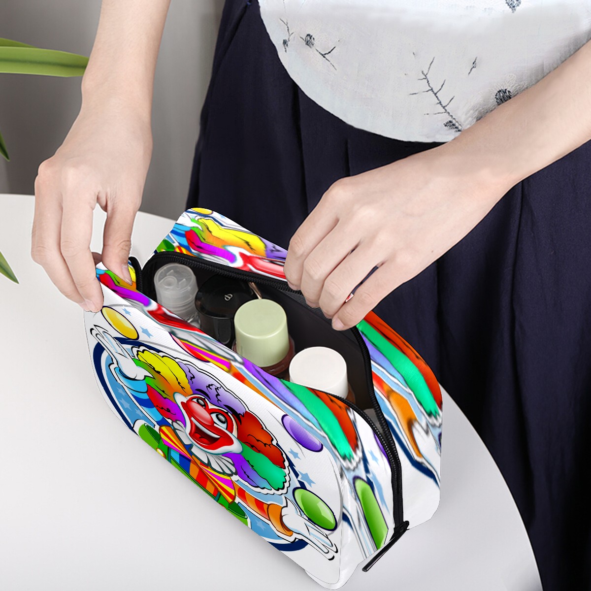 Cosmetic Bag for Women Girls Trave Makeup Bag Toiletry Case Pouch Accessories Organizer Cute Funny Cartoon Clown Paly Balloon
