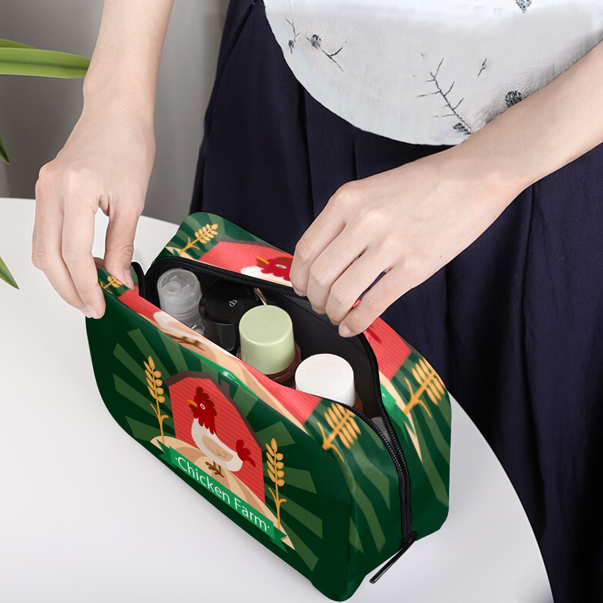Cosmetic Bag for Women Girls Trave Makeup Bag Toiletry Case Pouch Accessories Organizer Cute Chicken Farm