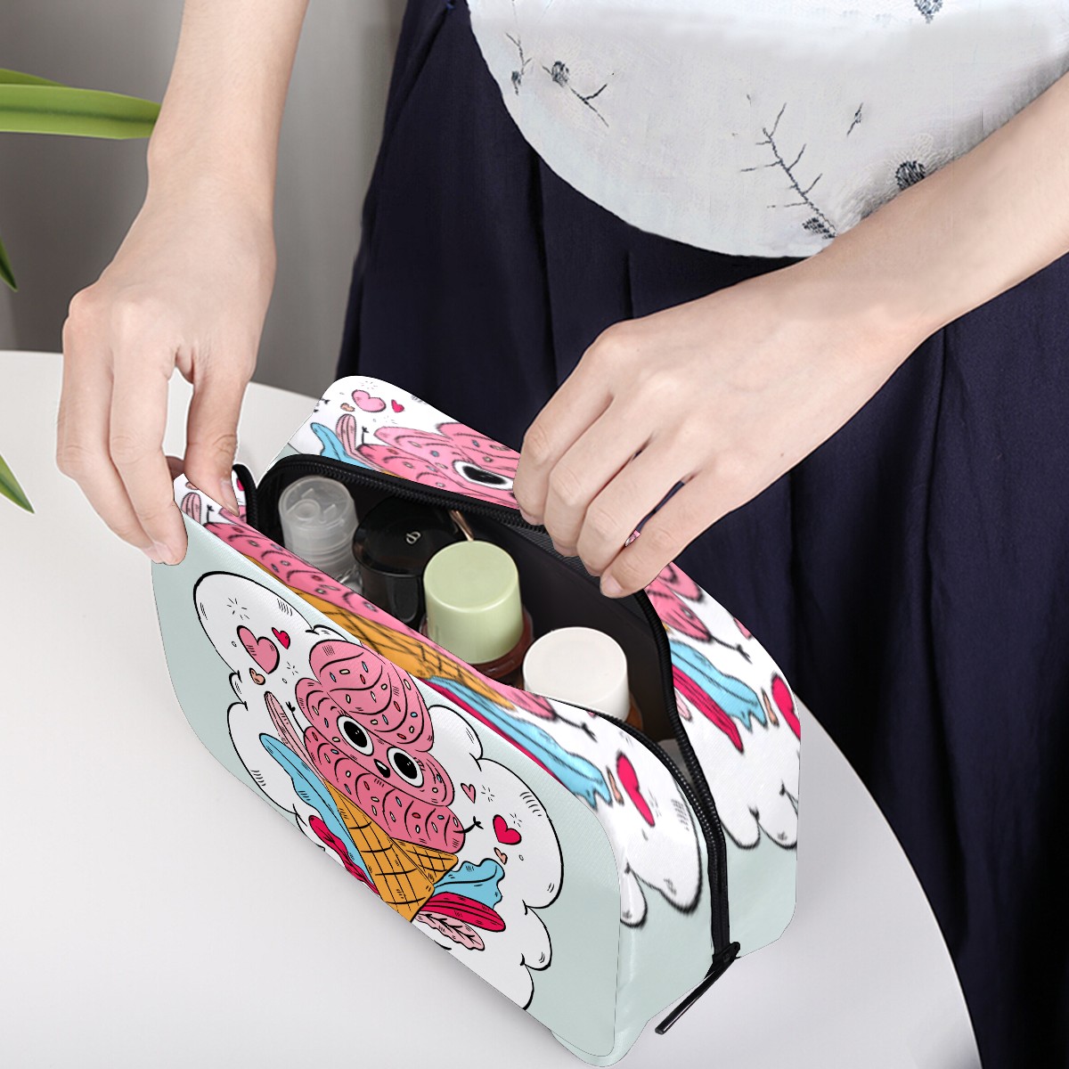 Cosmetic Bag for Women Girls Trave Makeup Bag Toiletry Case Pouch Accessories Organizer Cute Cartoon Poop Ice Cream