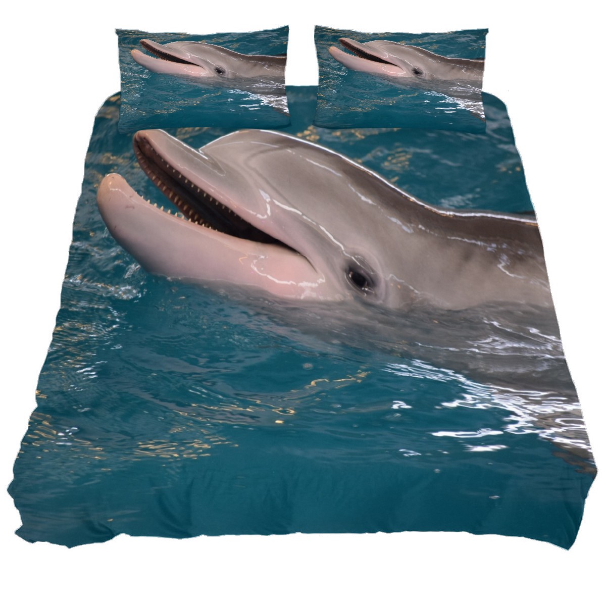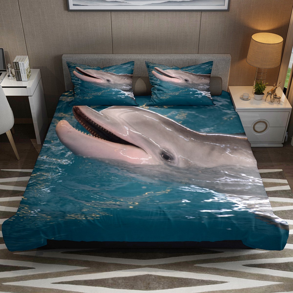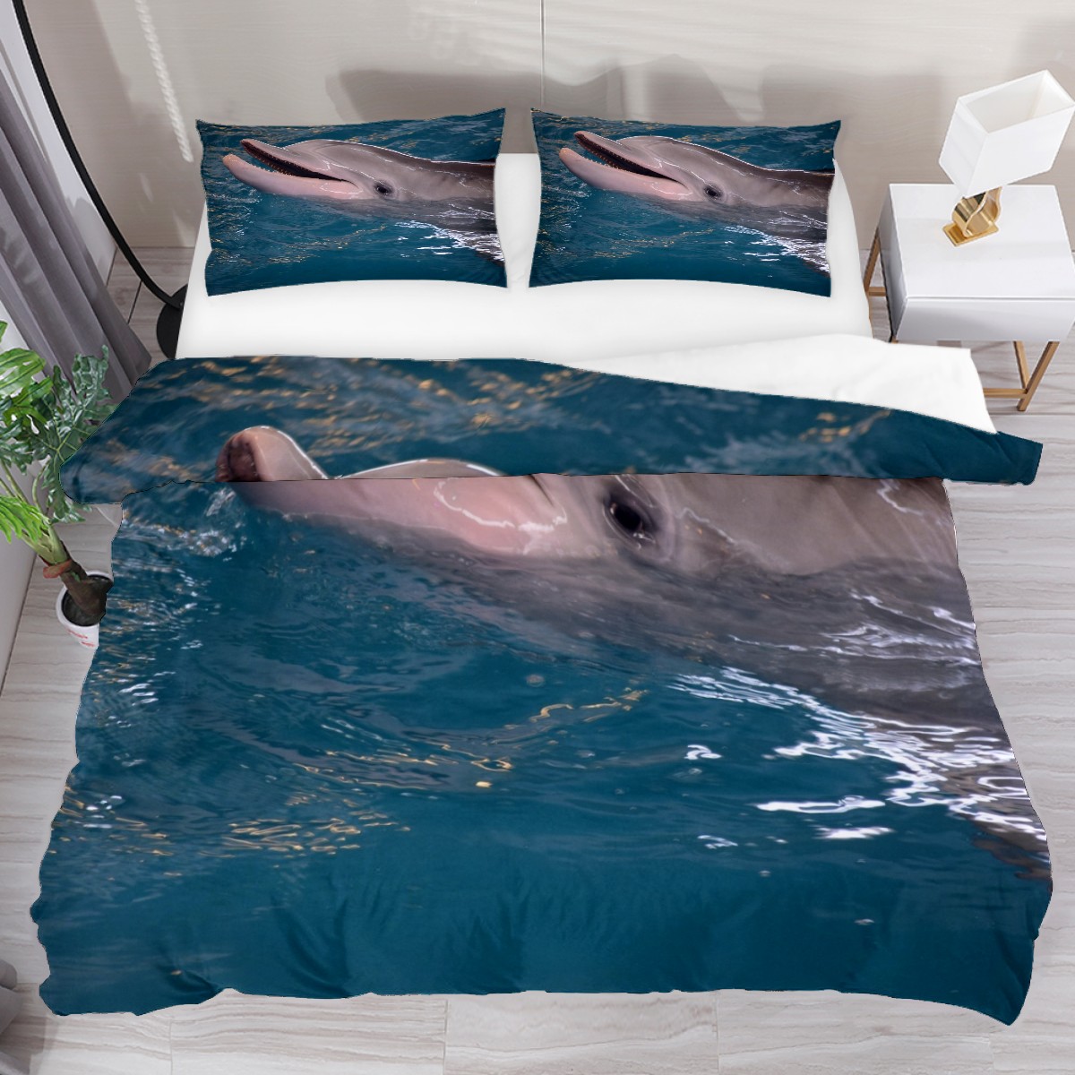 Duvet Cover Twin Cute Sea Dolphin 3pcs Bedding Duvet Cover Set Modern Quilt Cover Microfiber Comforter Cover with Button Closure with 2 Pillow Cases 1 Duvet Cover