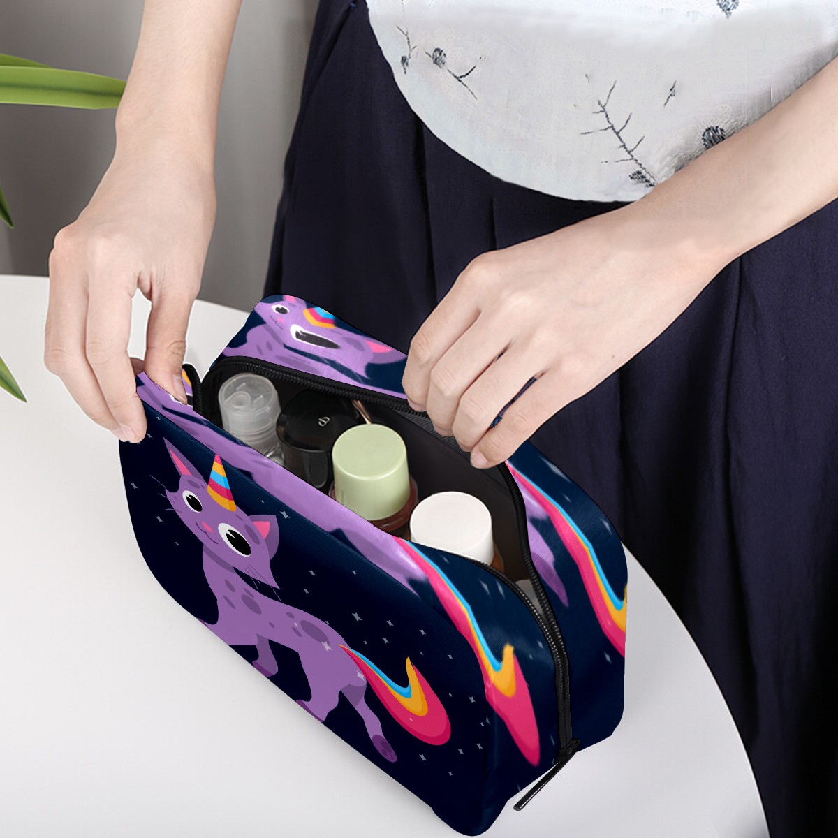 Cosmetic Bag for Women Girls Trave Makeup Bag Toiletry Case Pouch Accessories Organizer Cute Cat Rainbow Wannabe Unicorn