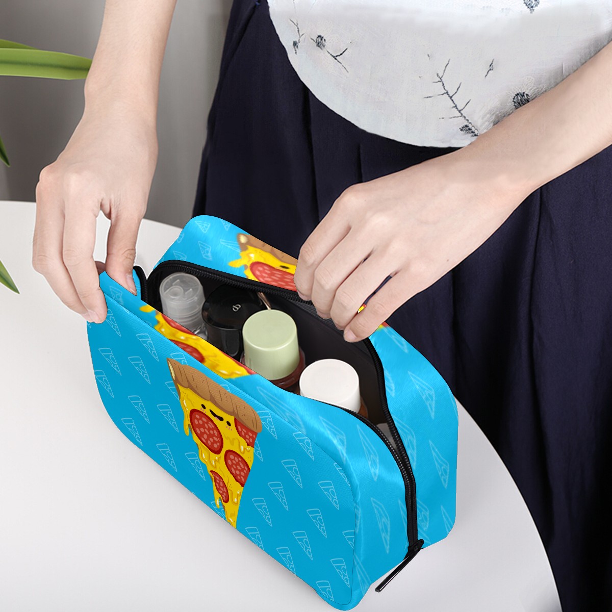 Cosmetic Bag for Women Girls Trave Makeup Bag Toiletry Case Pouch Accessories Organizer Cute Cartoon Pizza Pattern Triangle