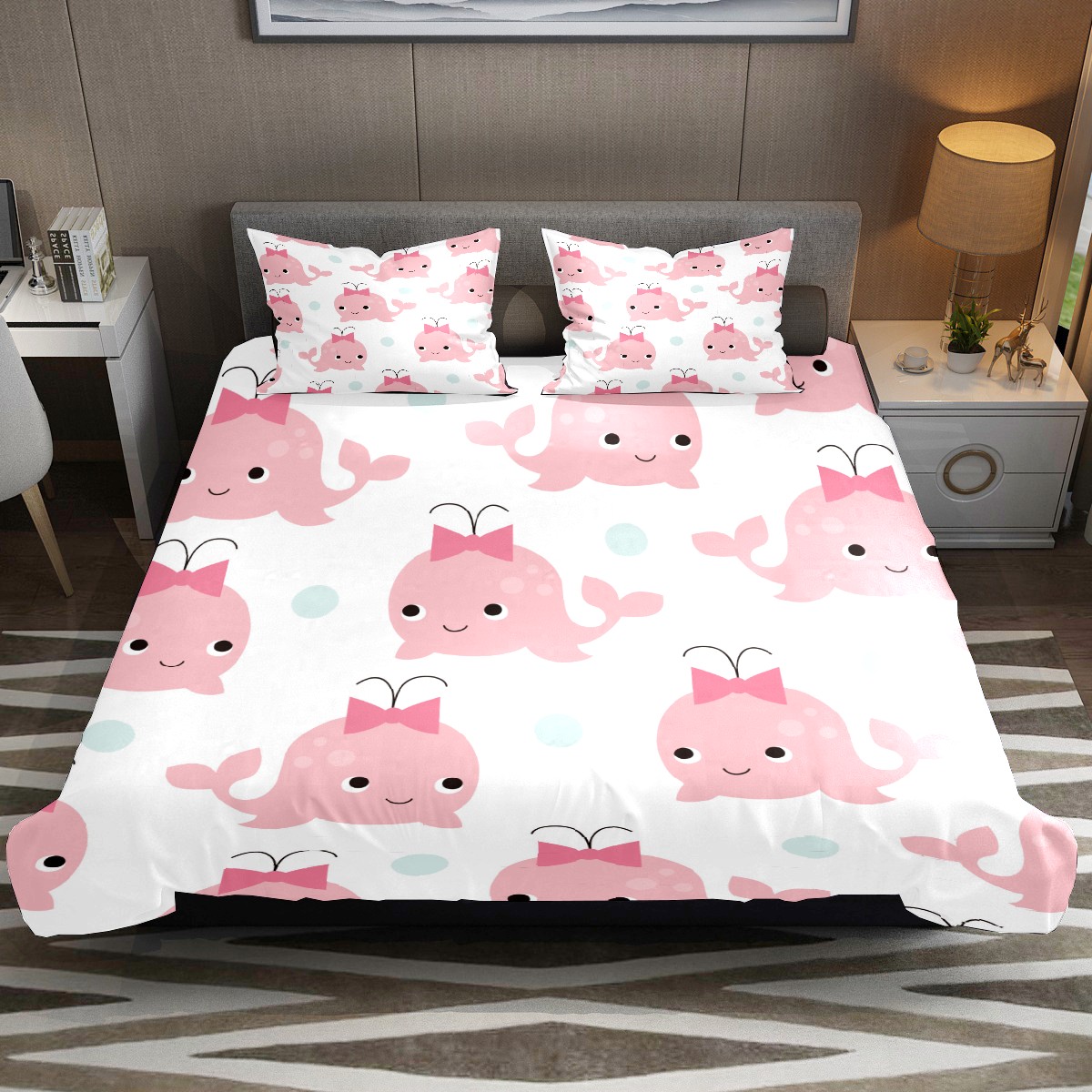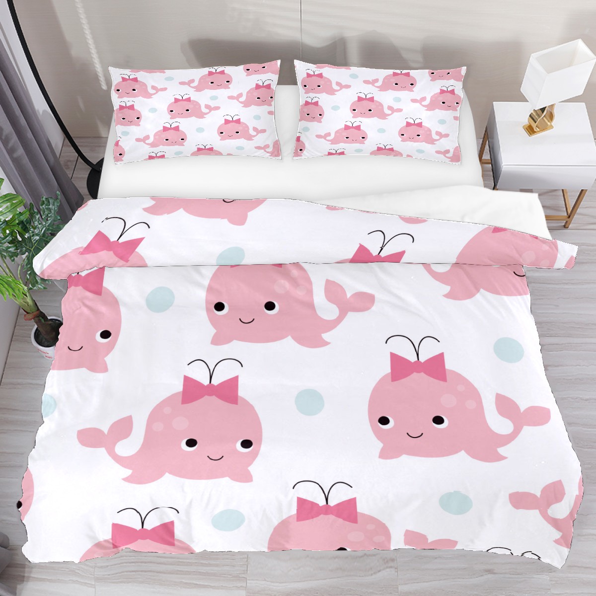 Duvet Cover Twin Cute Pink Whale 3pcs Bedding Duvet Cover Set Modern Quilt Cover Microfiber Comforter Cover with Button Closure with 2 Pillow Cases 1 Duvet Cover