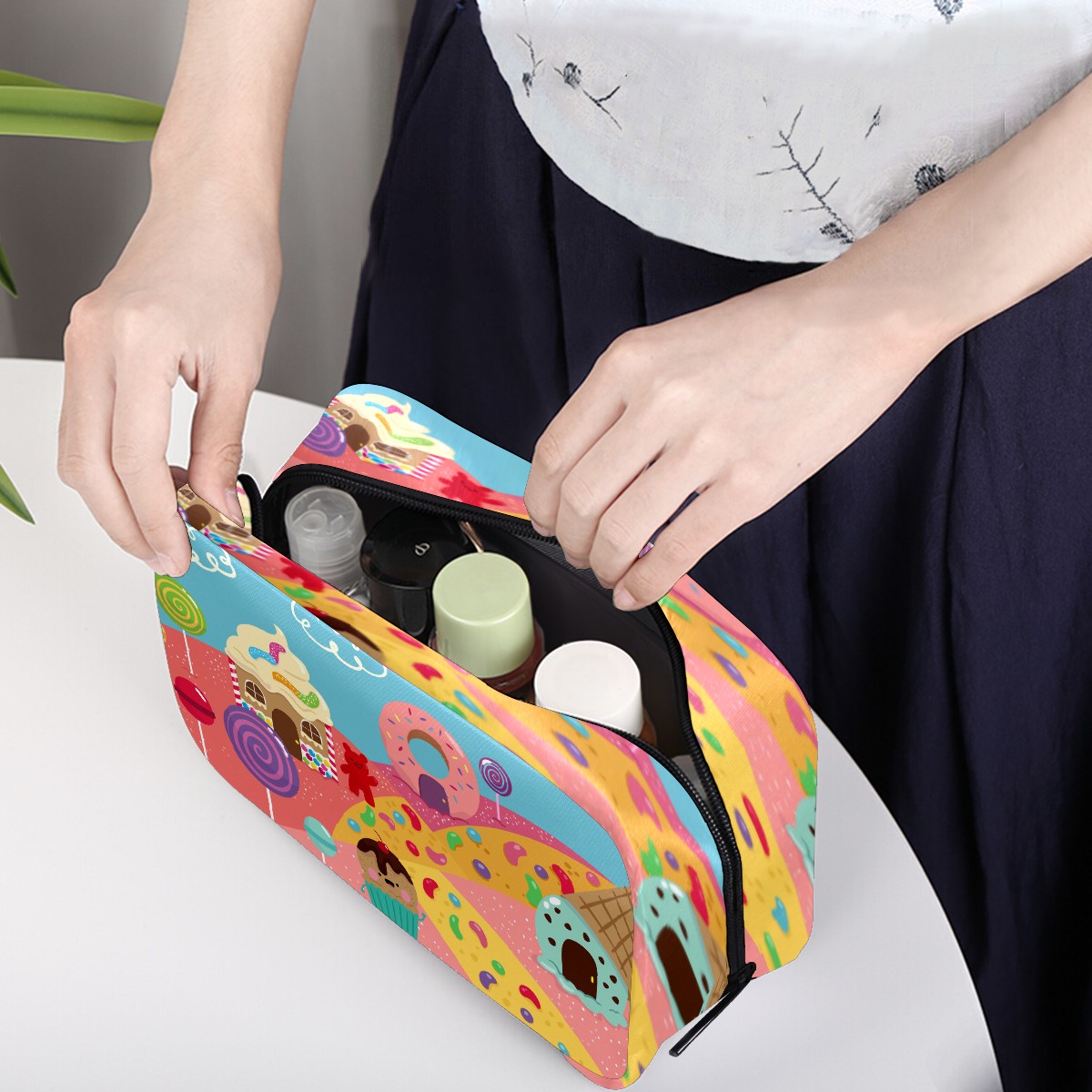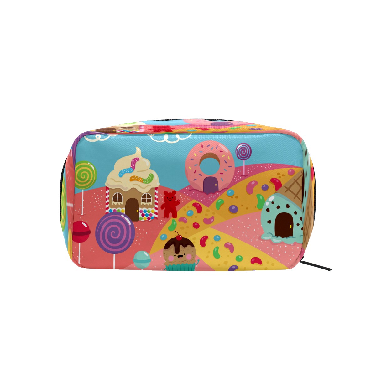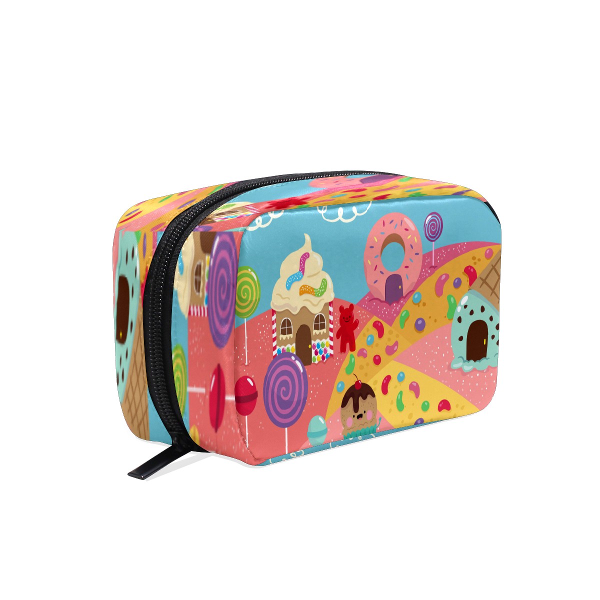 Cosmetic Bag for Women Girls Trave Makeup Bag Toiletry Case Pouch Accessories Organizer Cute Cartoon Candy World Donuts Lollipop