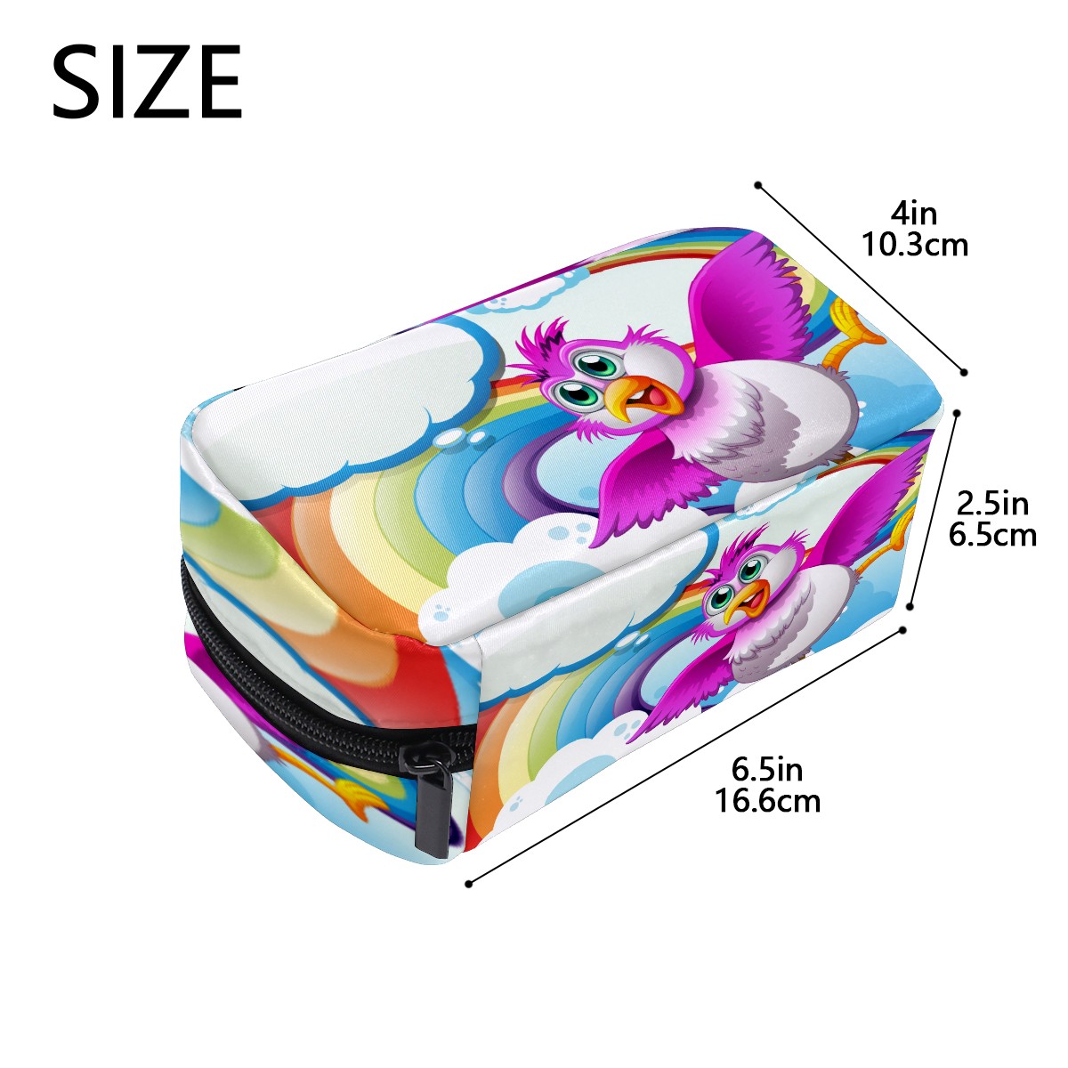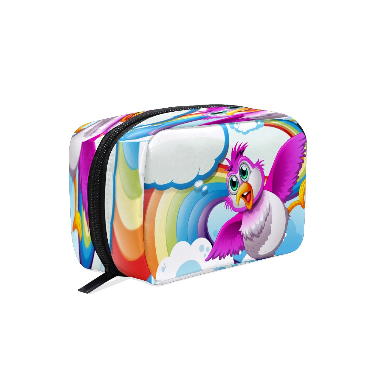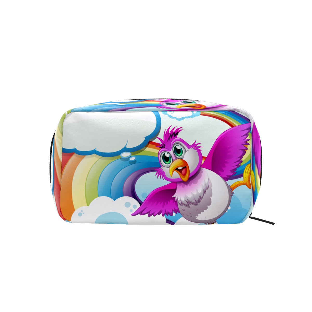 Cosmetic Bag for Women Girls Trave Makeup Bag Toiletry Case Pouch Accessories Organizer Cute Cartoon Bird Flying In The Rainbow Clouds