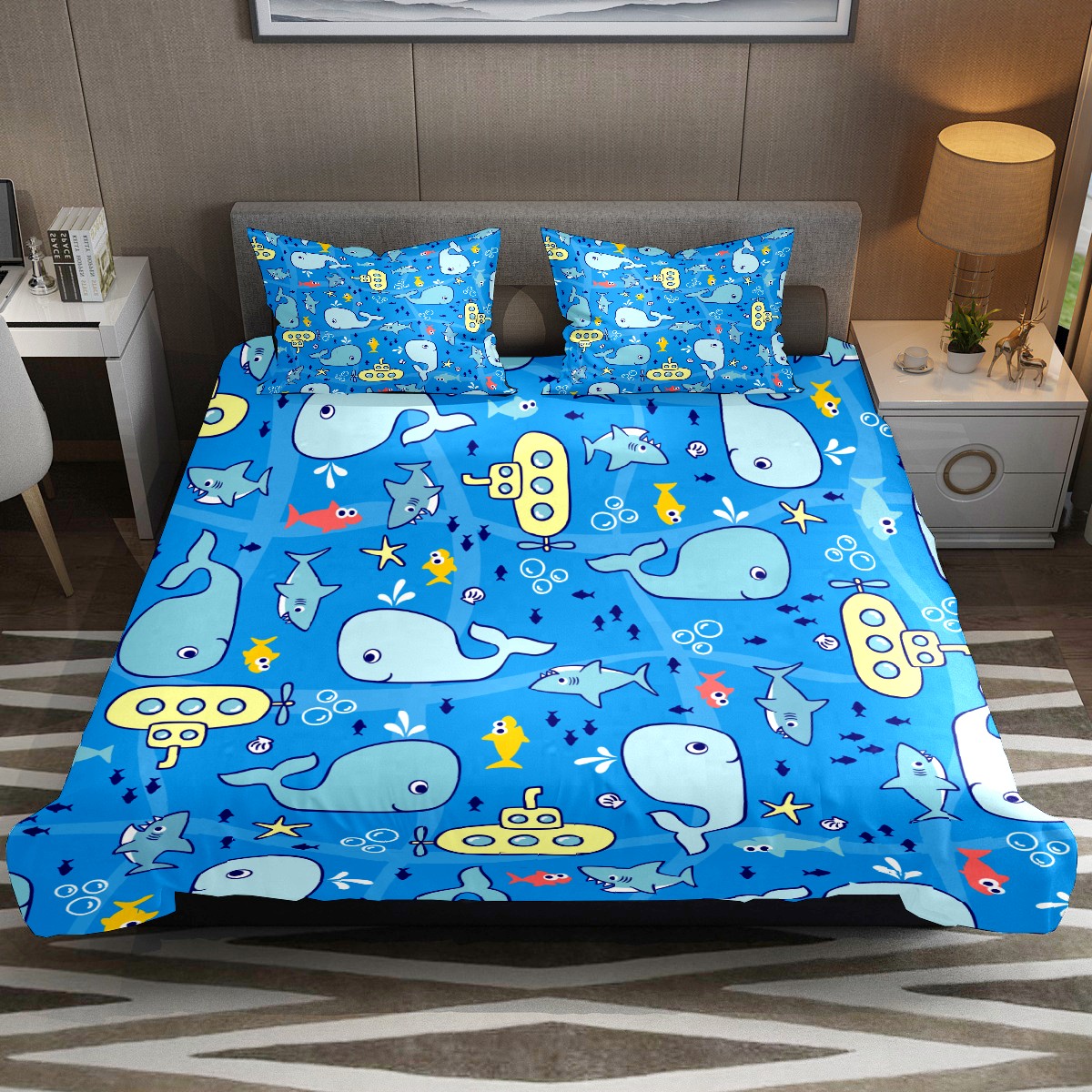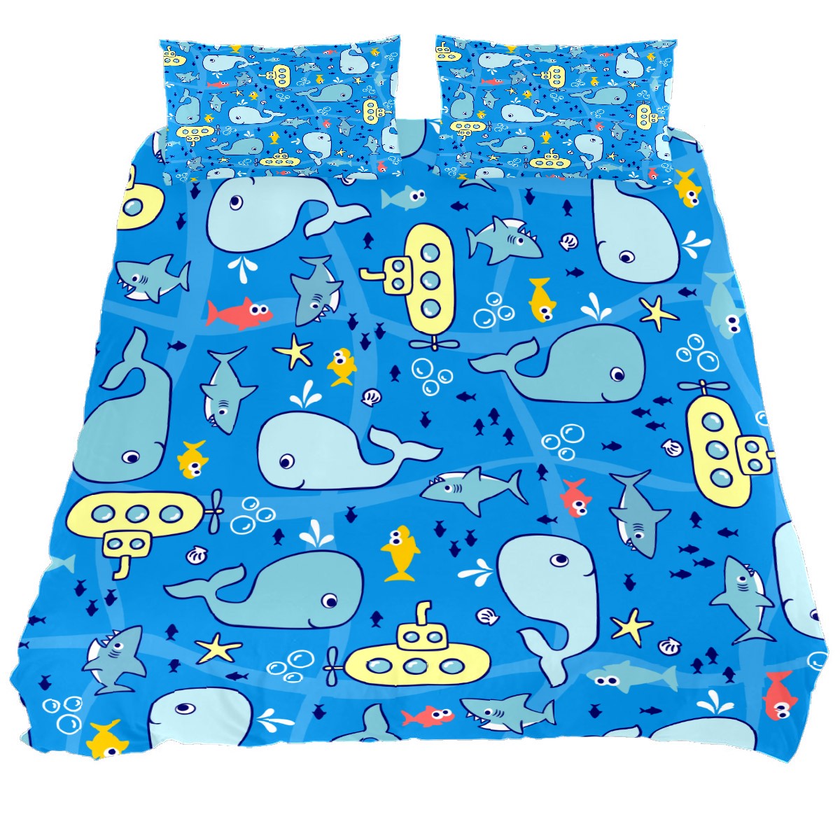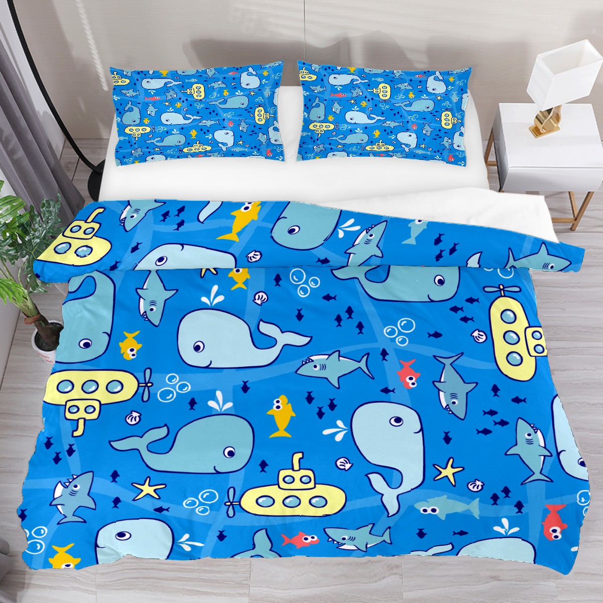 Duvet Cover Twin Cute Fish Whale Blue Ocean 3pcs Bedding Duvet Cover Set Modern Quilt Cover Microfiber Comforter Cover with Button Closure with 2 Pillow Cases 1 Duvet Cover
