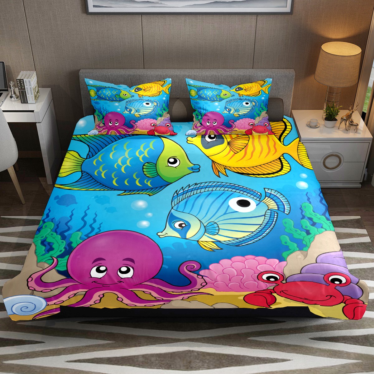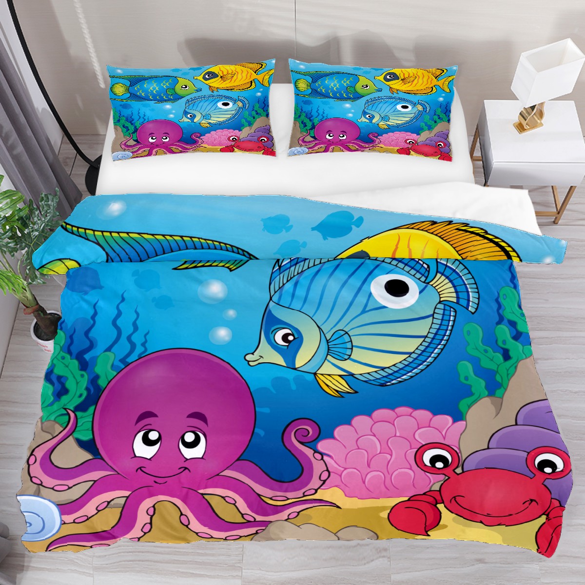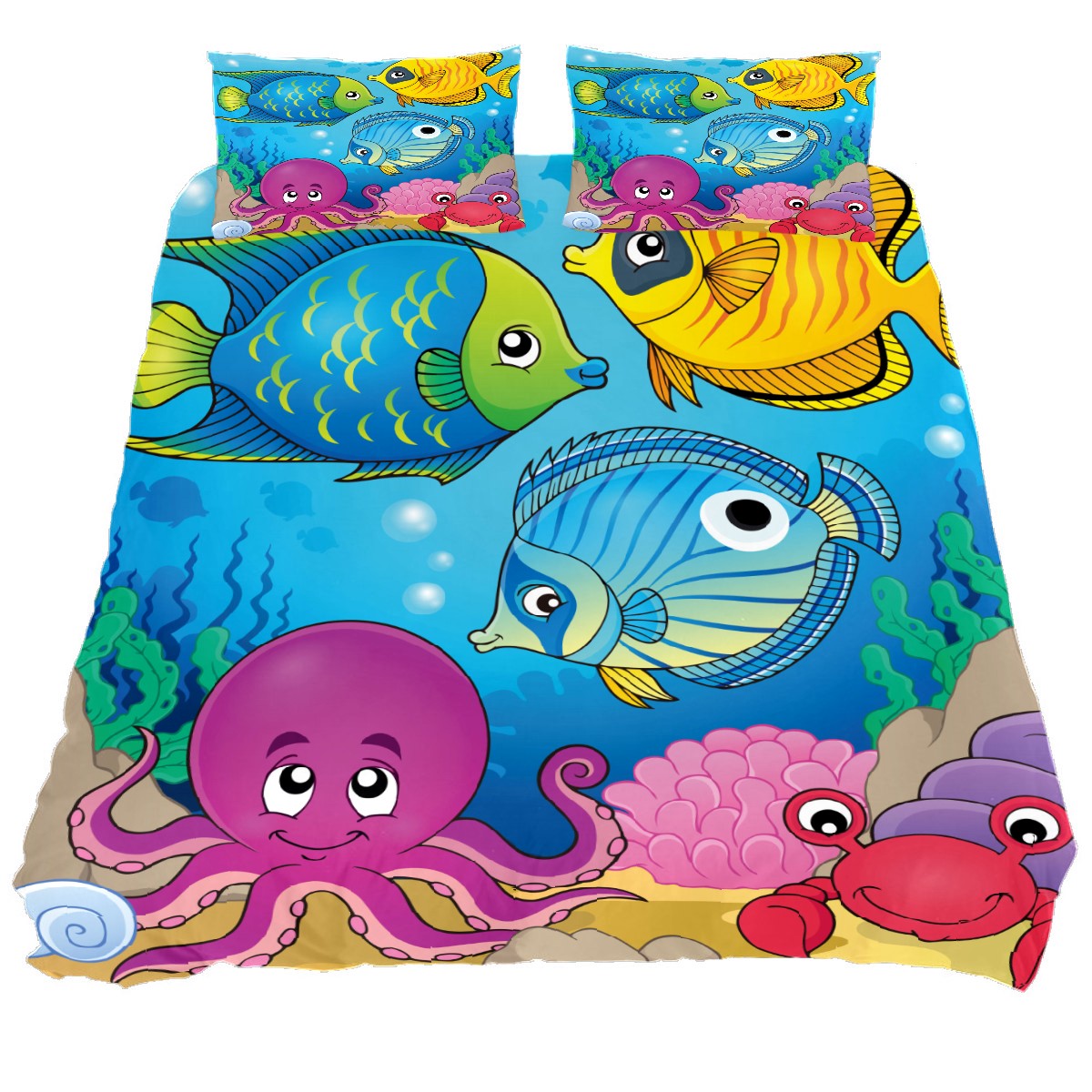 Duvet Cover Twin Cute Fish Sea Animal Octopus 3pcs Bedding Duvet Cover Set Modern Quilt Cover Microfiber Comforter Cover with Button Closure with 2 Pillow Cases 1 Duvet Cover