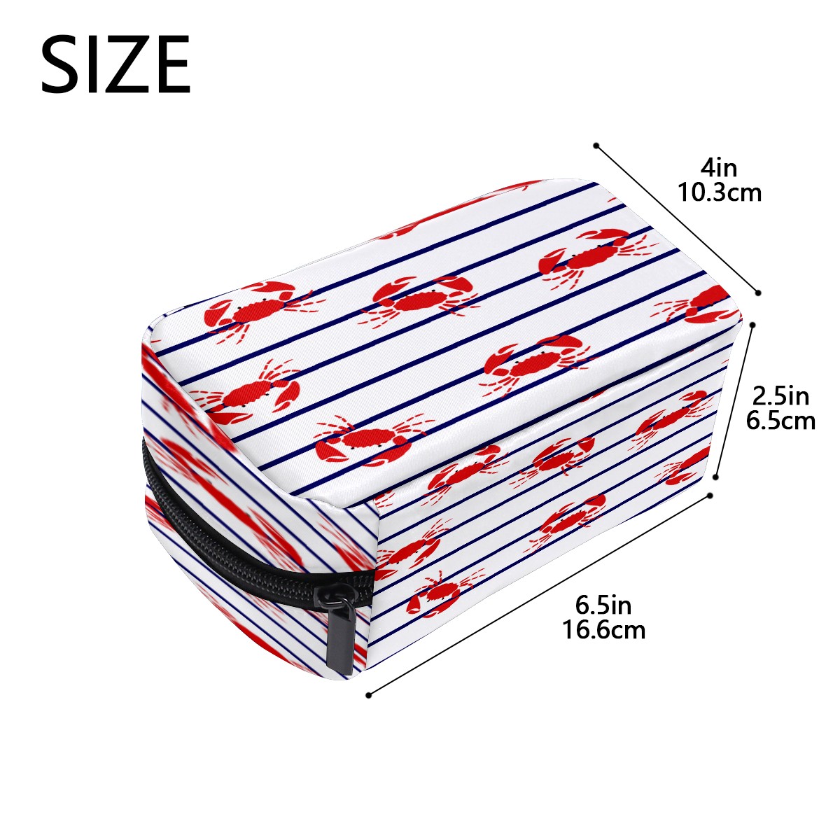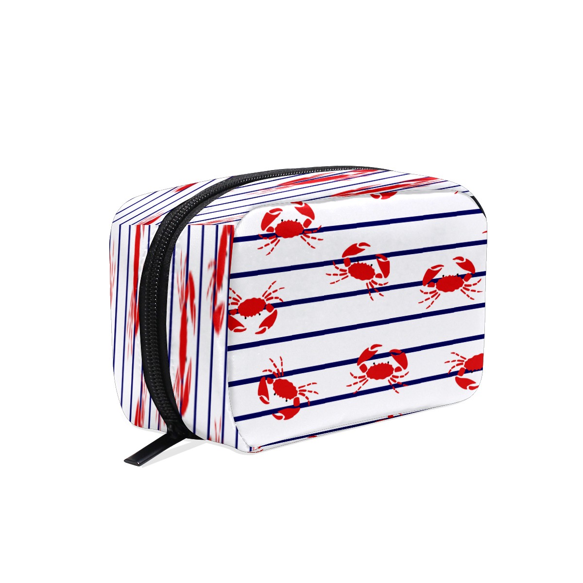 Cosmetic Bag for Women Girls Trave Makeup Bag Toiletry Case Pouch Accessories Organizer Crab Blue Stripes Pattern