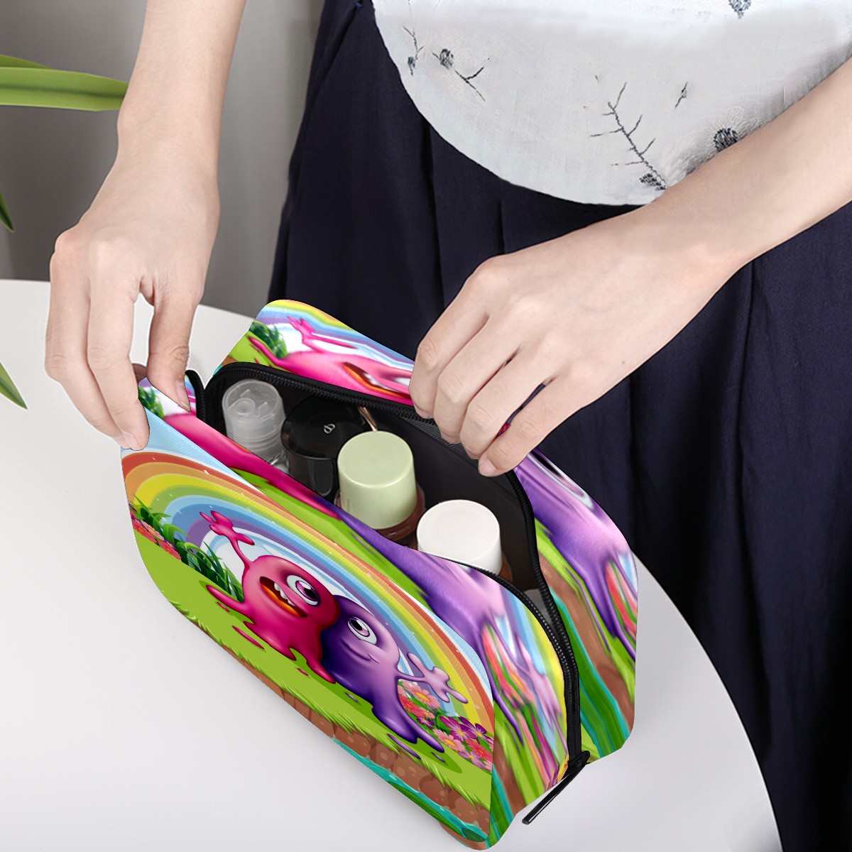Cosmetic Bag for Women Girls Trave Makeup Bag Toiletry Case Pouch Accessories Organizer Colorful Rainbow Cartoon Funny Monster