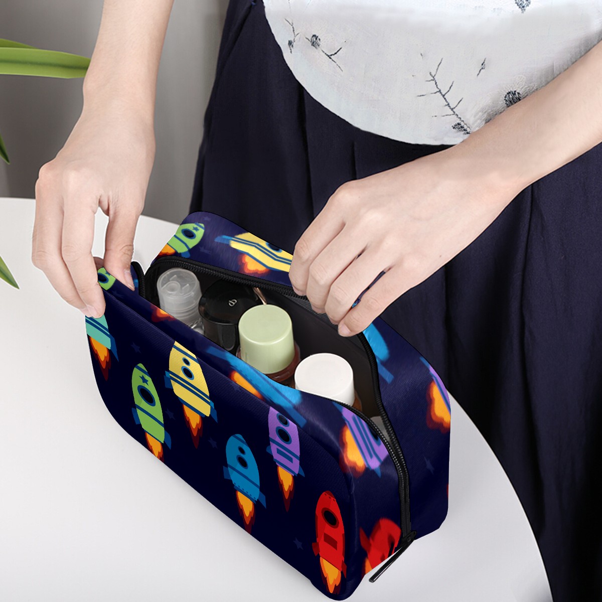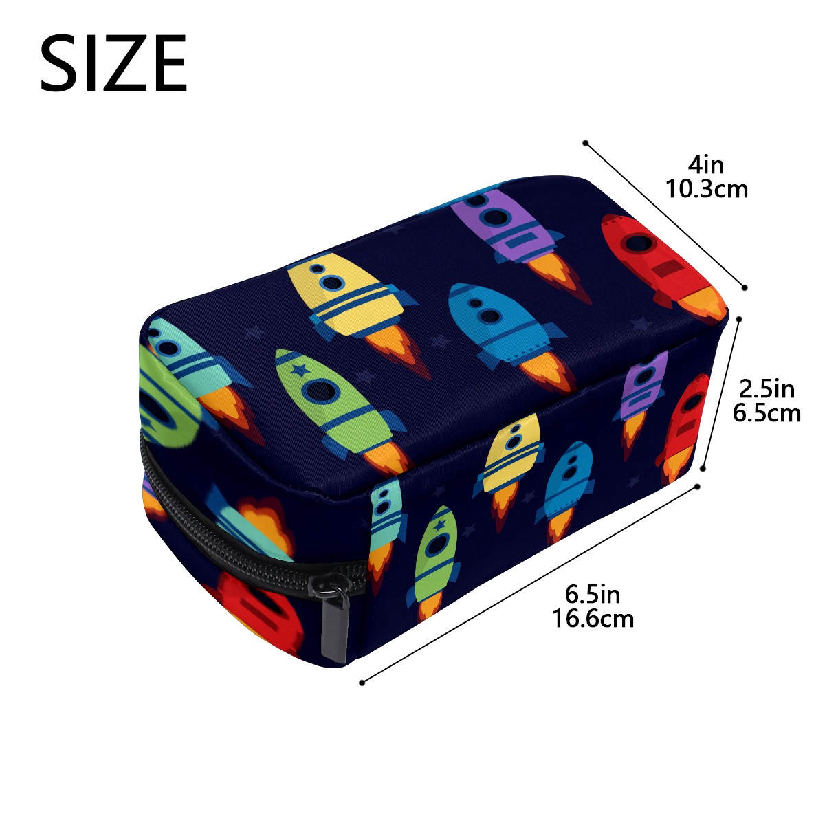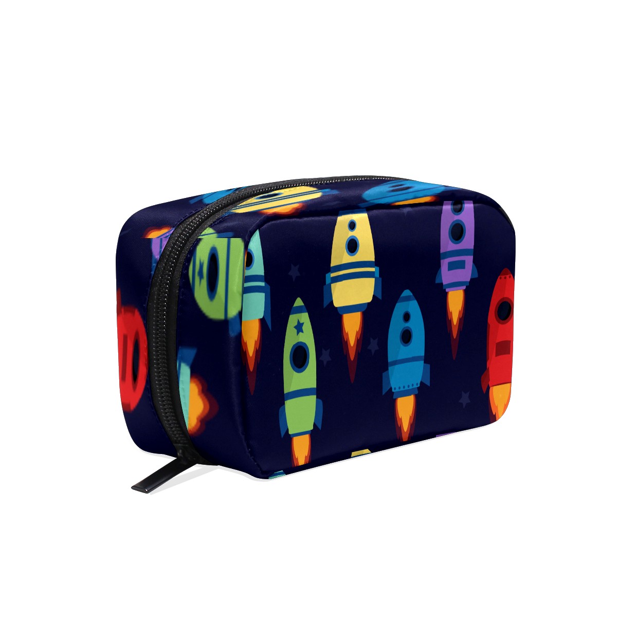 Cosmetic Bag for Women Girls Trave Makeup Bag Toiletry Case Pouch Accessories Organizer Colorful Spaceships Rockets Stars