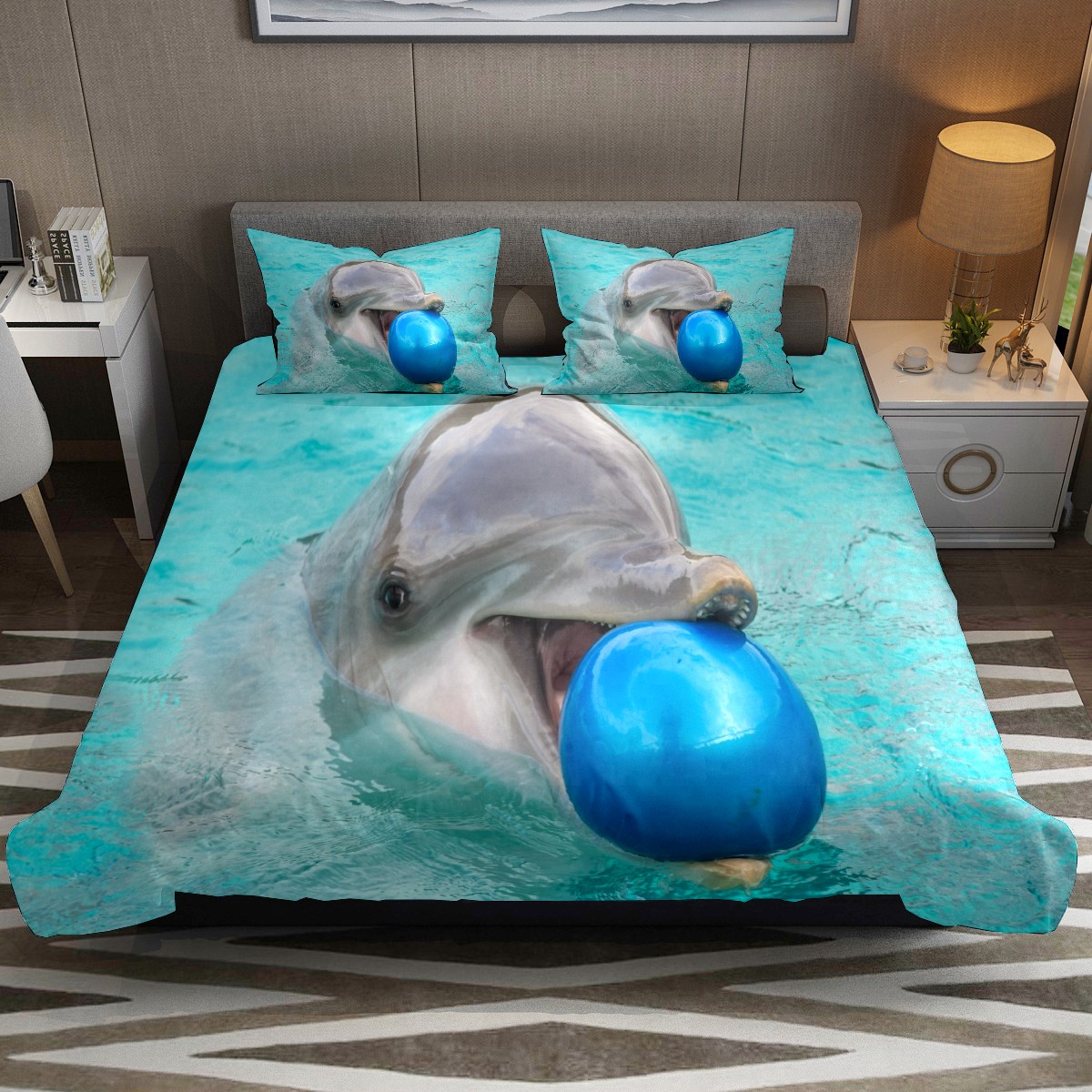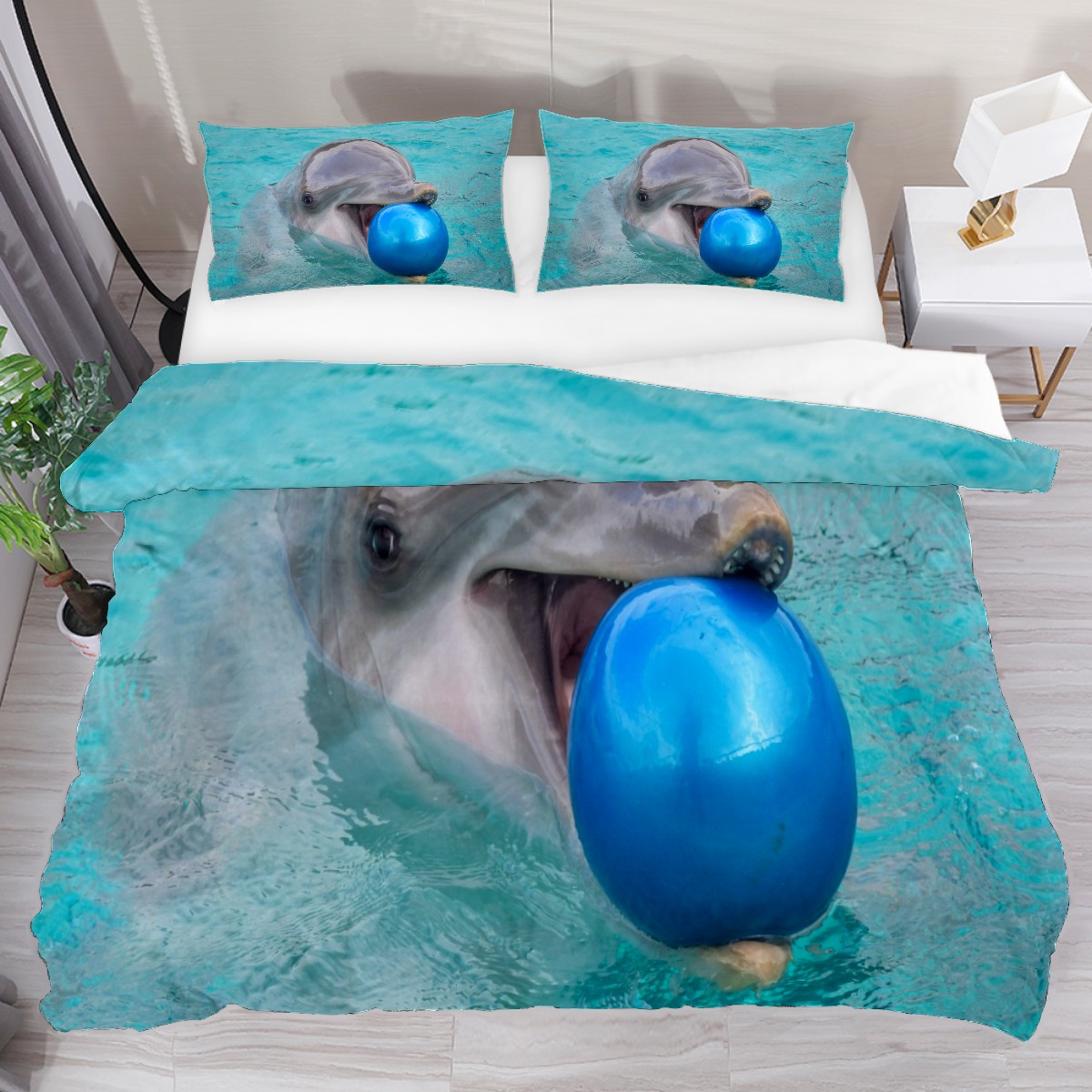 Duvet Cover Twin Cute Dolphin With Ball 3pcs Bedding Duvet Cover Set Modern Quilt Cover Microfiber Comforter Cover with Button Closure with 2 Pillow Cases 1 Duvet Cover