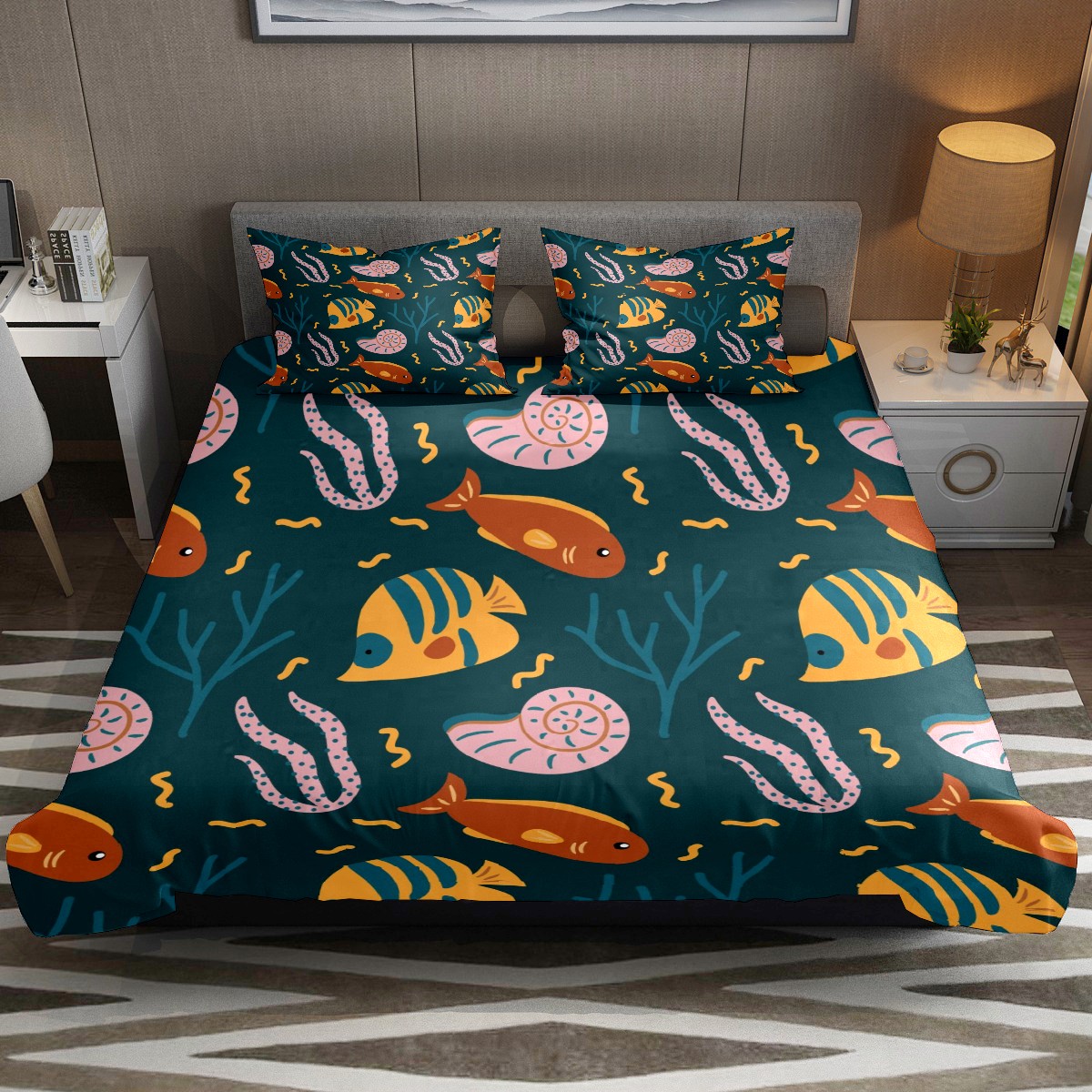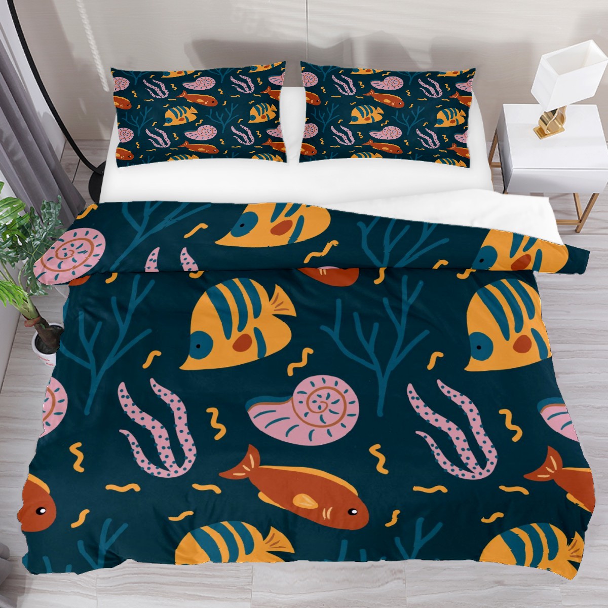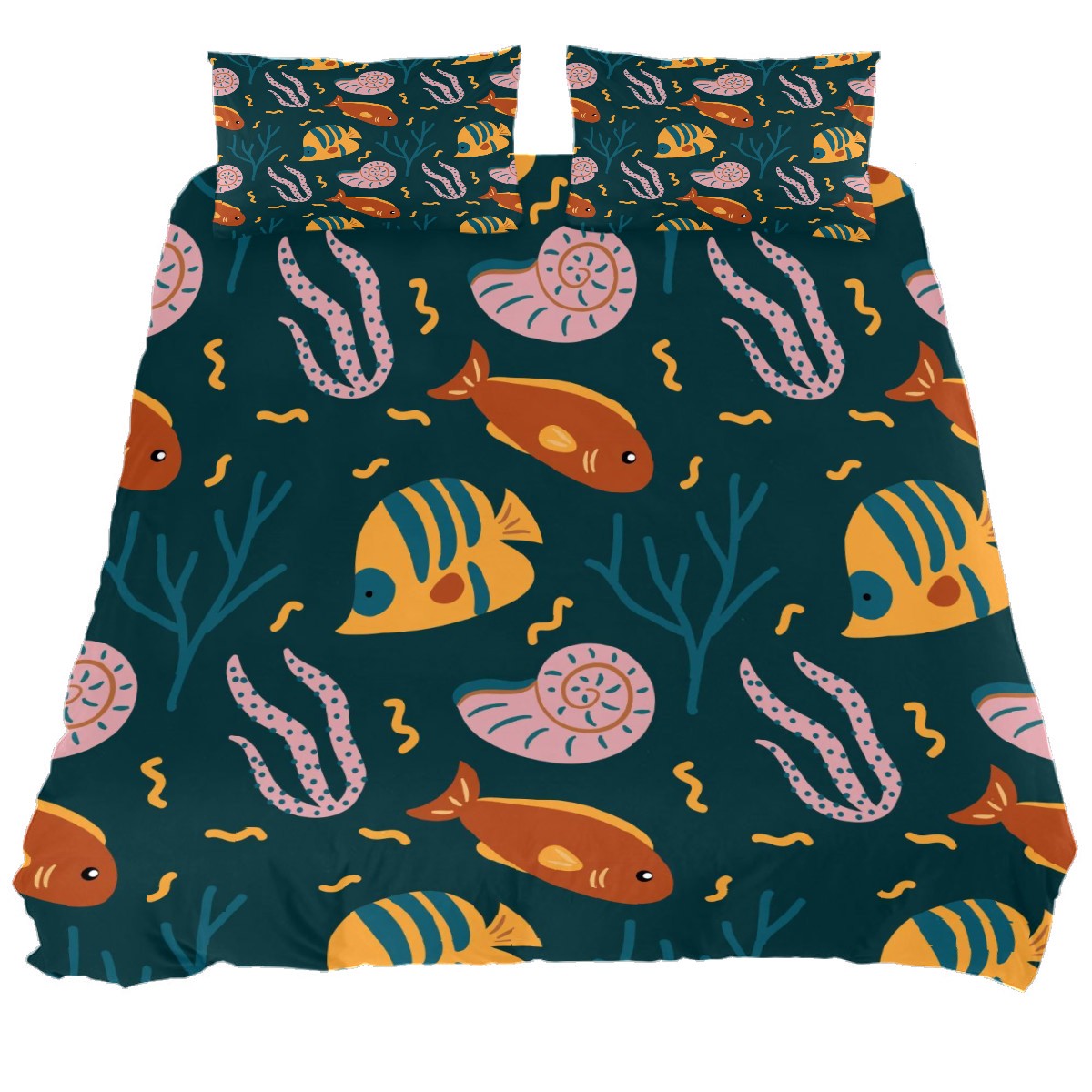 Duvet Cover Twin Cute Coral Fish Sea Pattern 3pcs Bedding Duvet Cover Set Modern Quilt Cover Microfiber Comforter Cover with Button Closure with 2 Pillow Cases 1 Duvet Cover