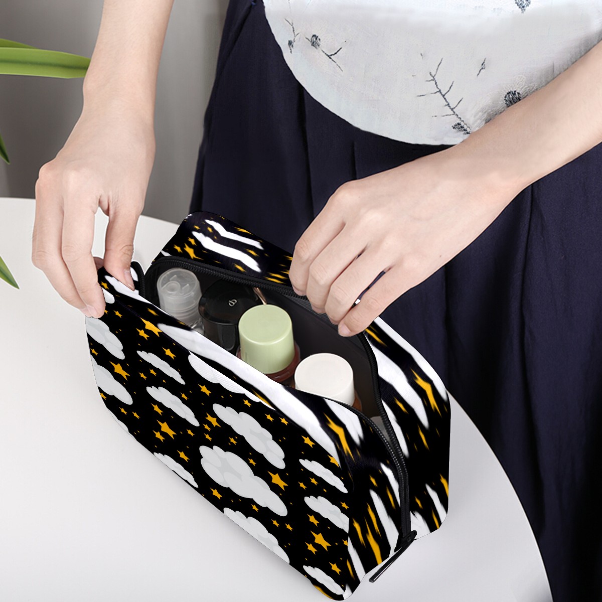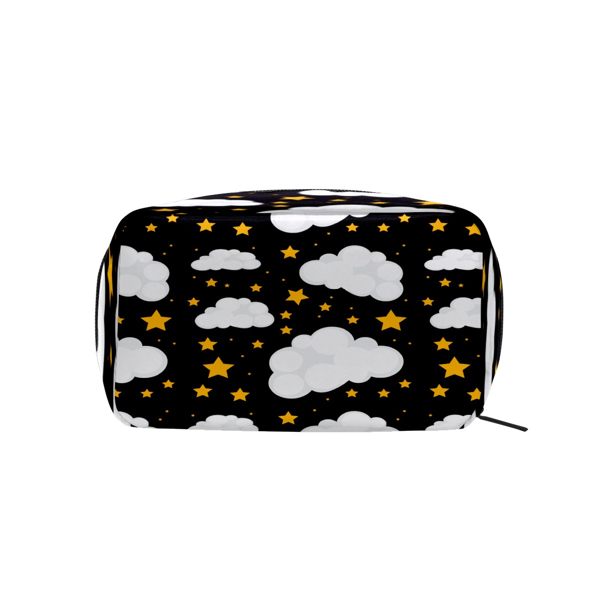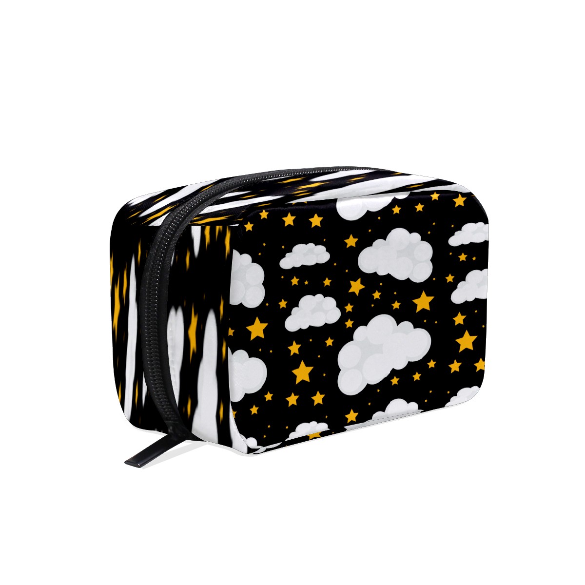 Cosmetic Bag for Women Girls Trave Makeup Bag Toiletry Case Pouch Accessories Organizer Clouds With Golden Stars Pattern