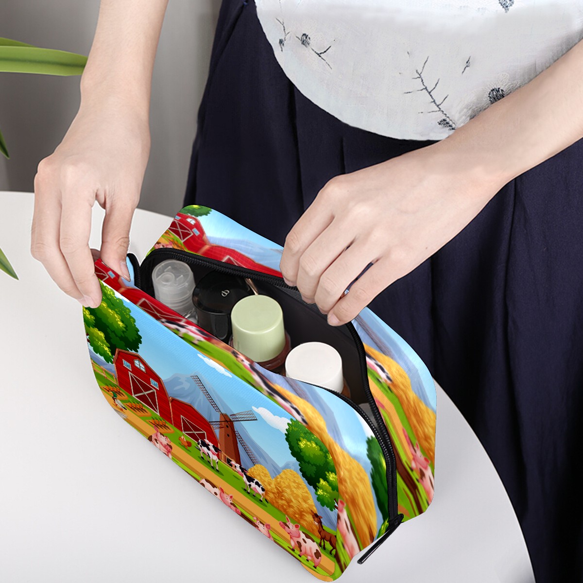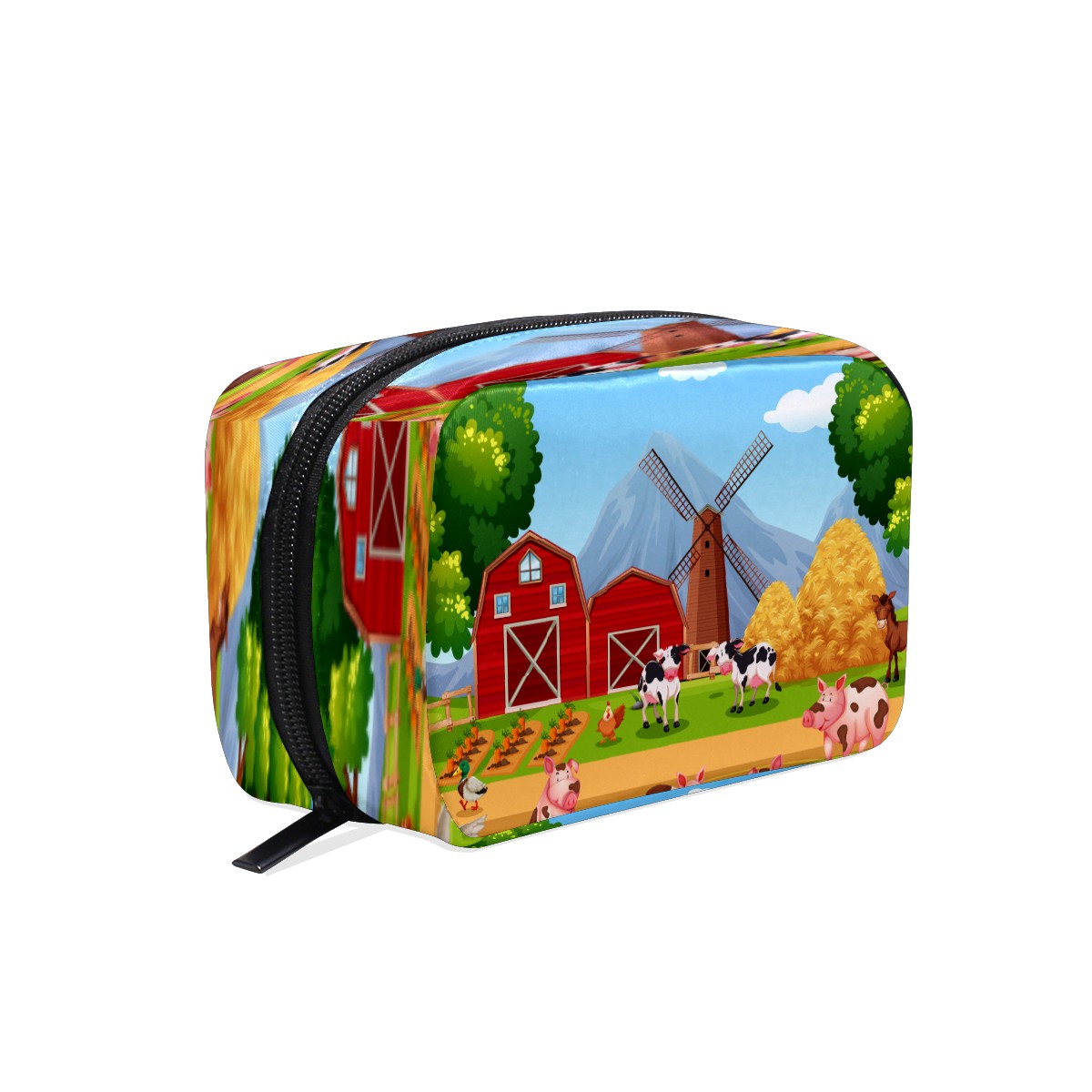 Cosmetic Bag for Women Girls Trave Makeup Bag Toiletry Case Pouch Accessories Organizer Cartoon Farm Animal Pig Goose Cow