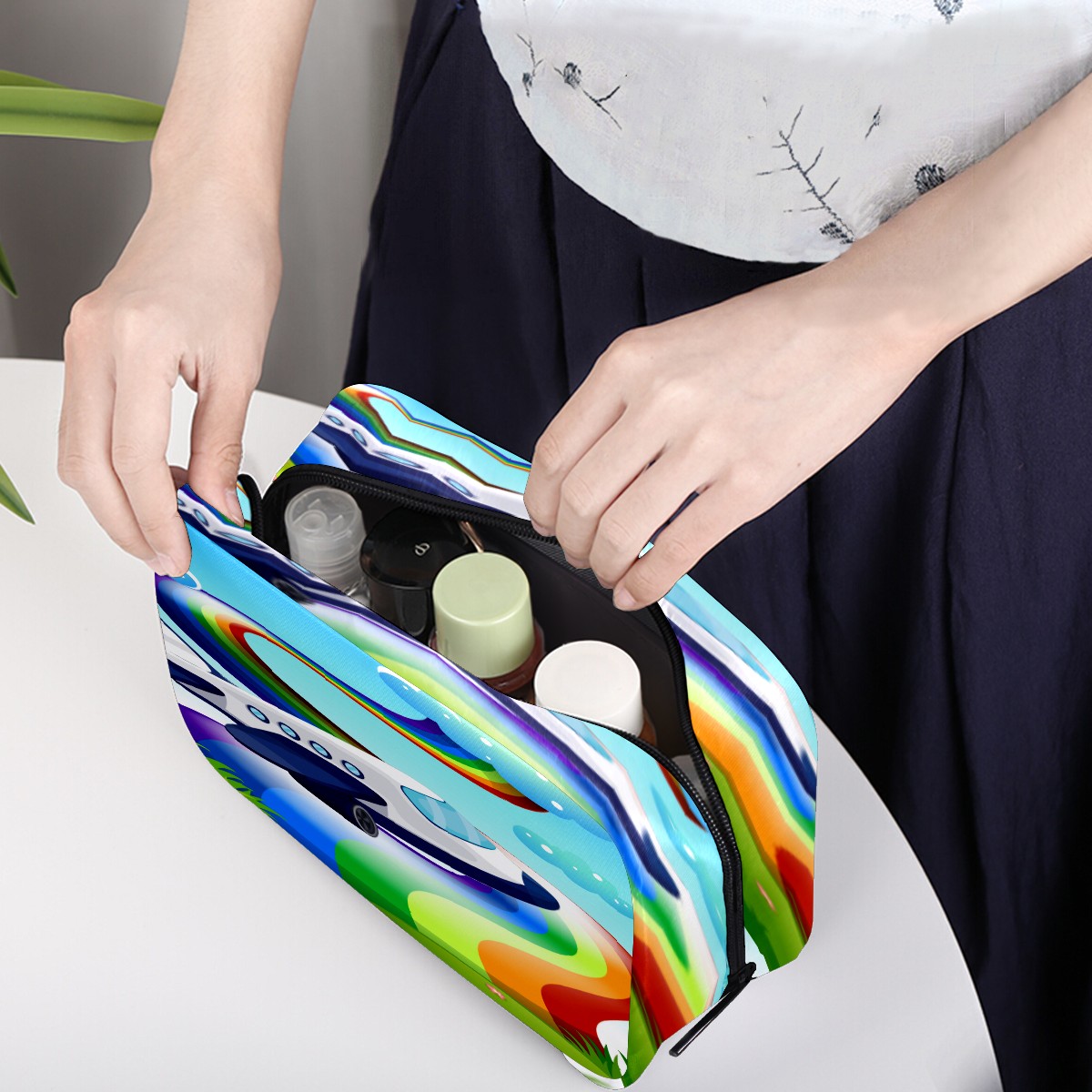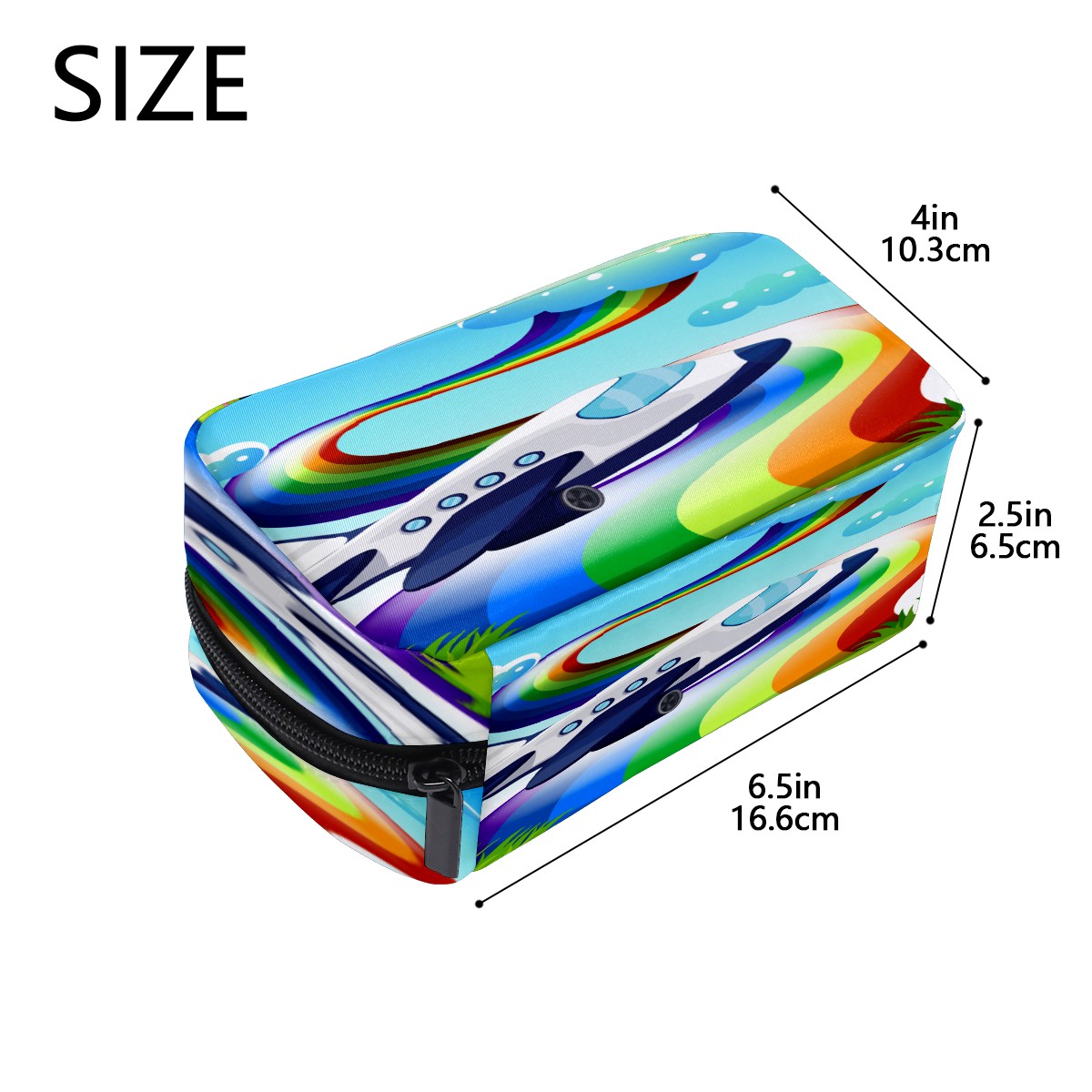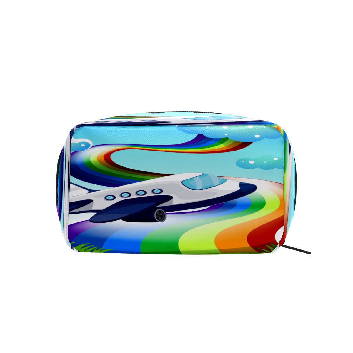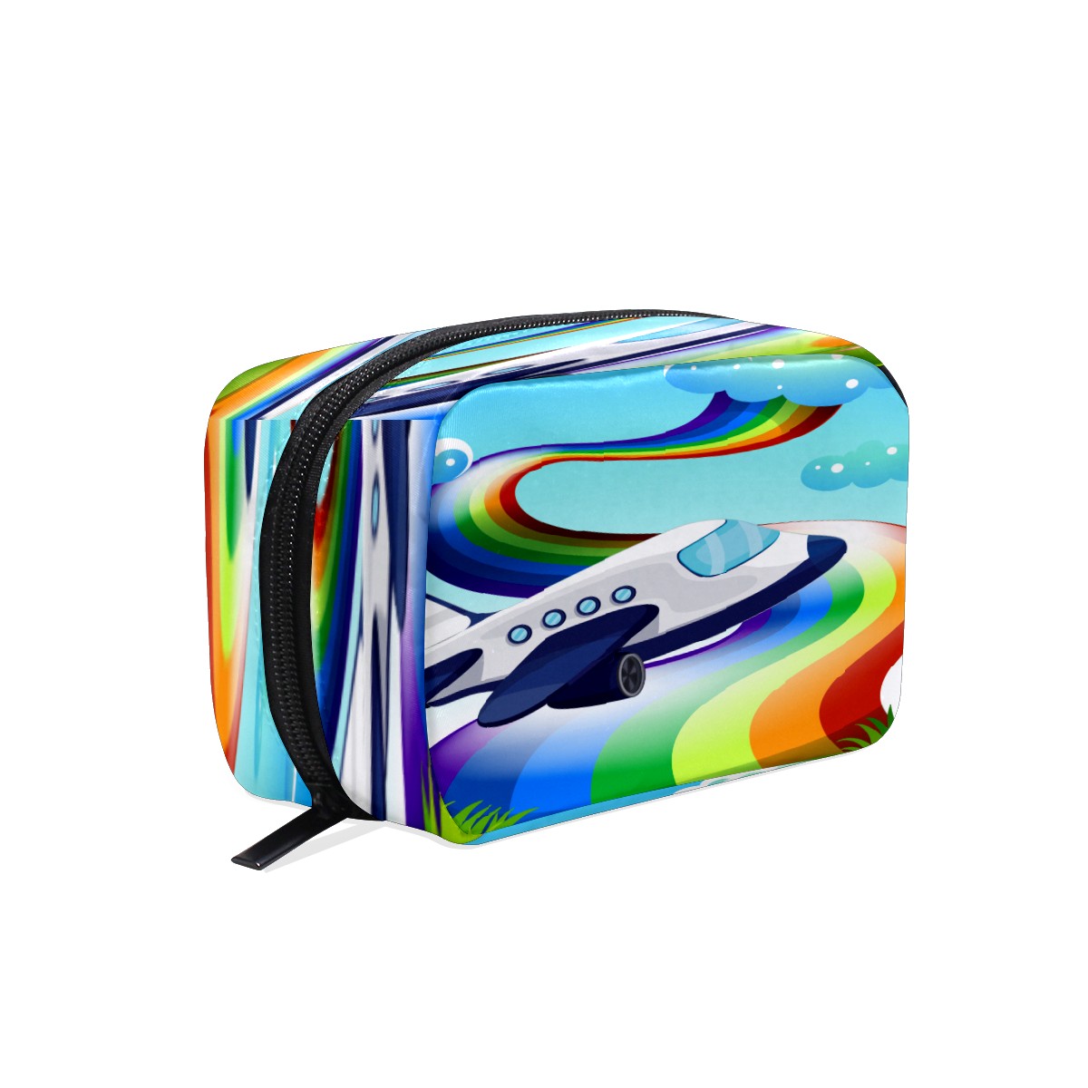Cosmetic Bag for Women Girls Trave Makeup Bag Toiletry Case Pouch Accessories Organizer Cartoon Jetplane With Rainbow
