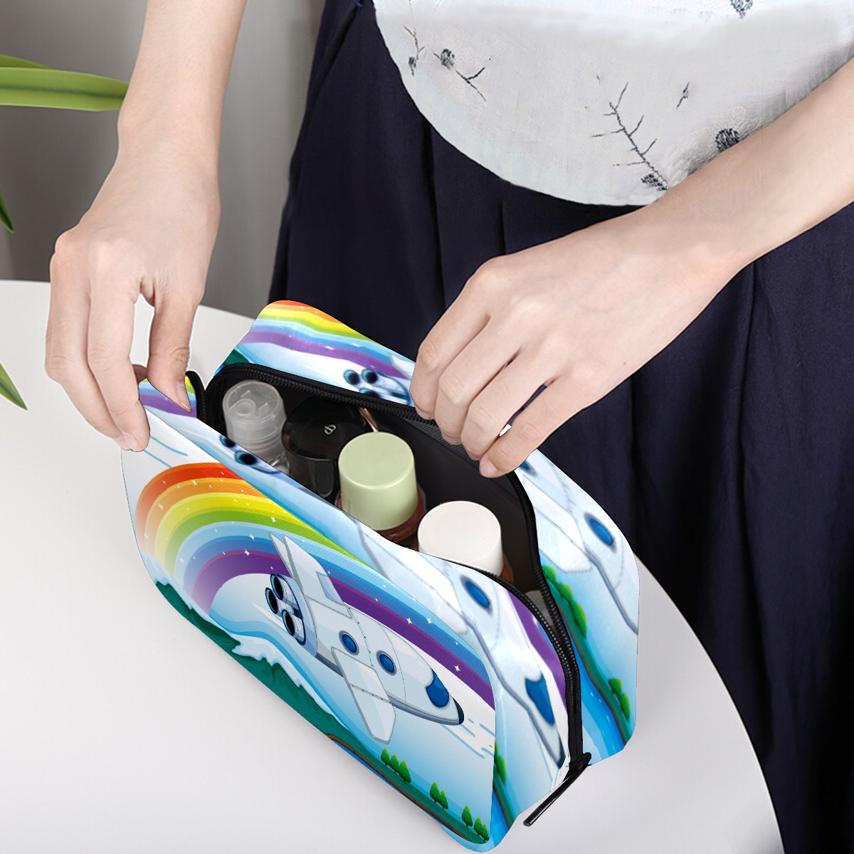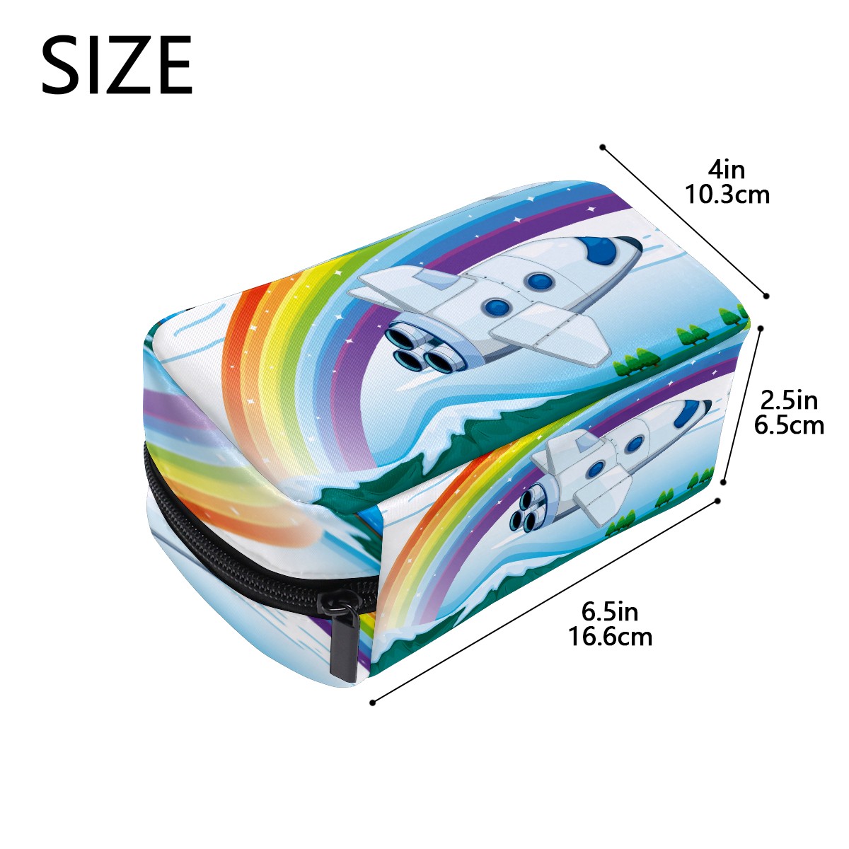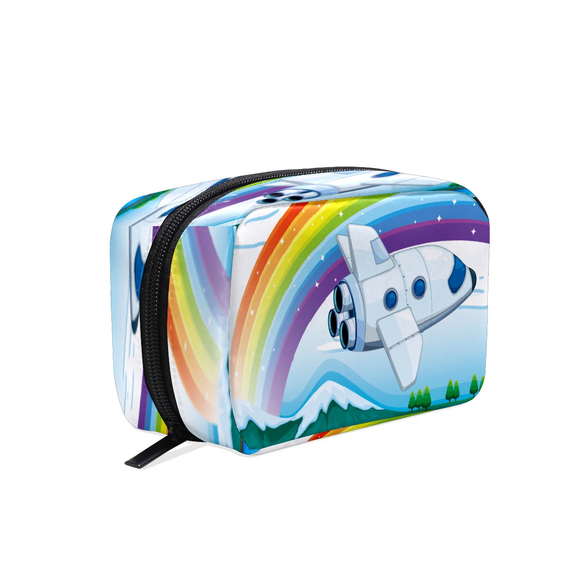 Cosmetic Bag for Women Girls Trave Makeup Bag Toiletry Case Pouch Accessories Organizer Cartoon Jetplane Near The Rainbow