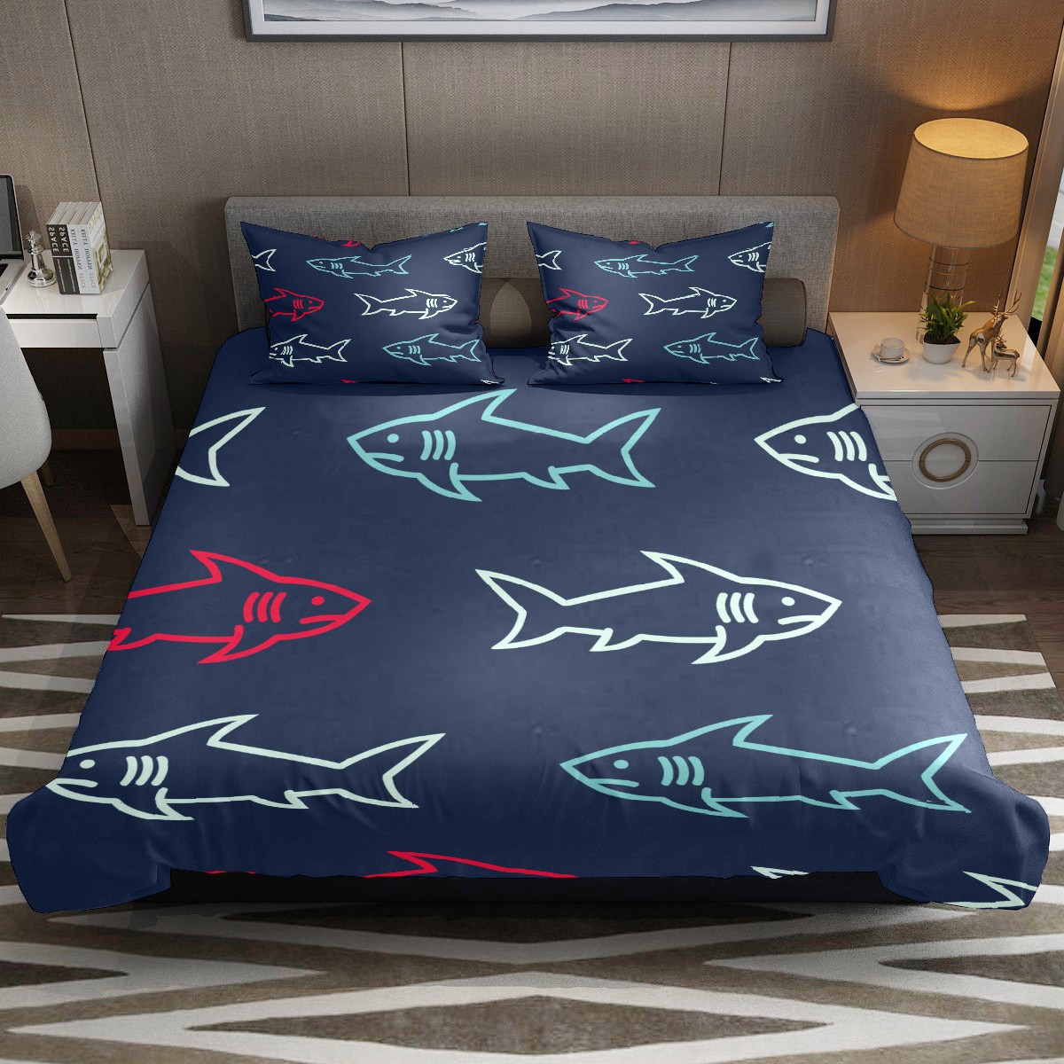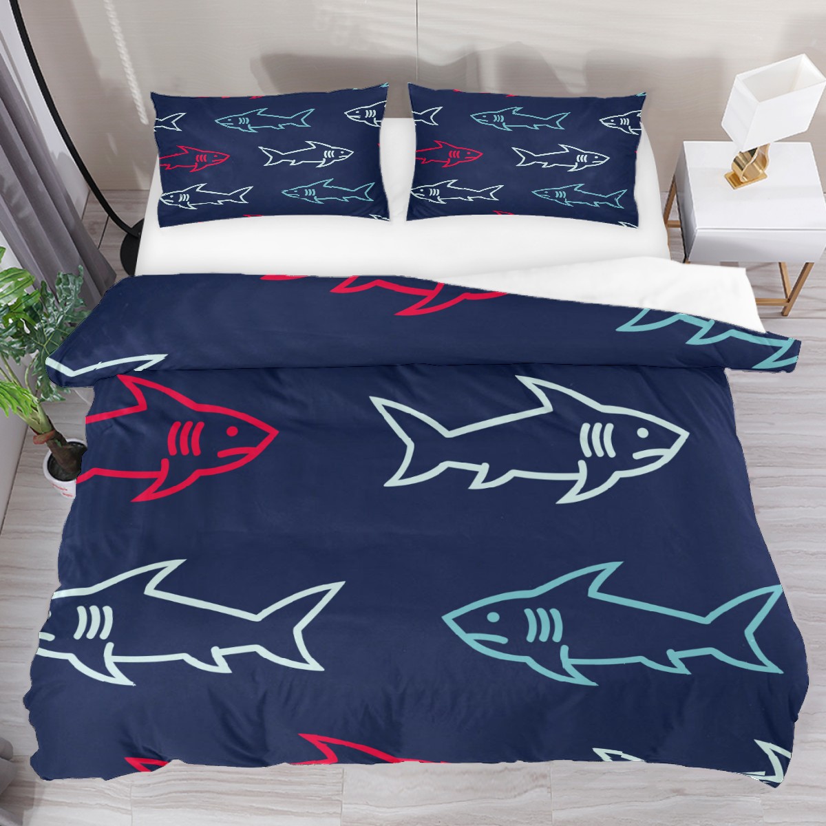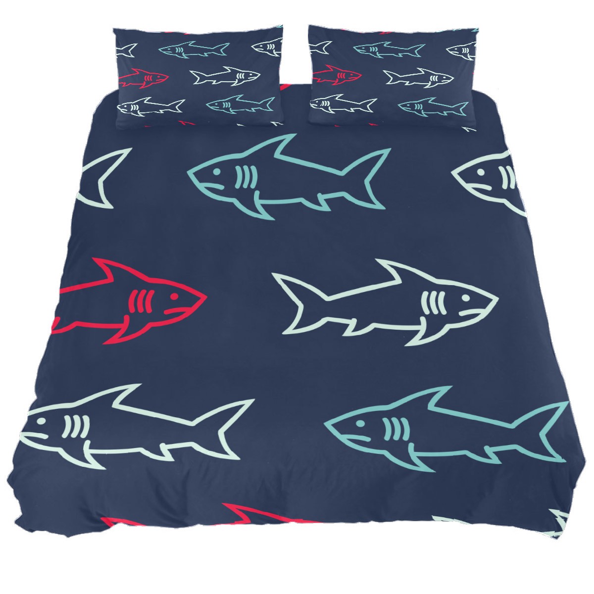 Duvet Cover Twin Cartoon Fish Shark Pattern 3pcs Bedding Duvet Cover Set Modern Quilt Cover Microfiber Comforter Cover with Button Closure with 2 Pillow Cases 1 Duvet Cover