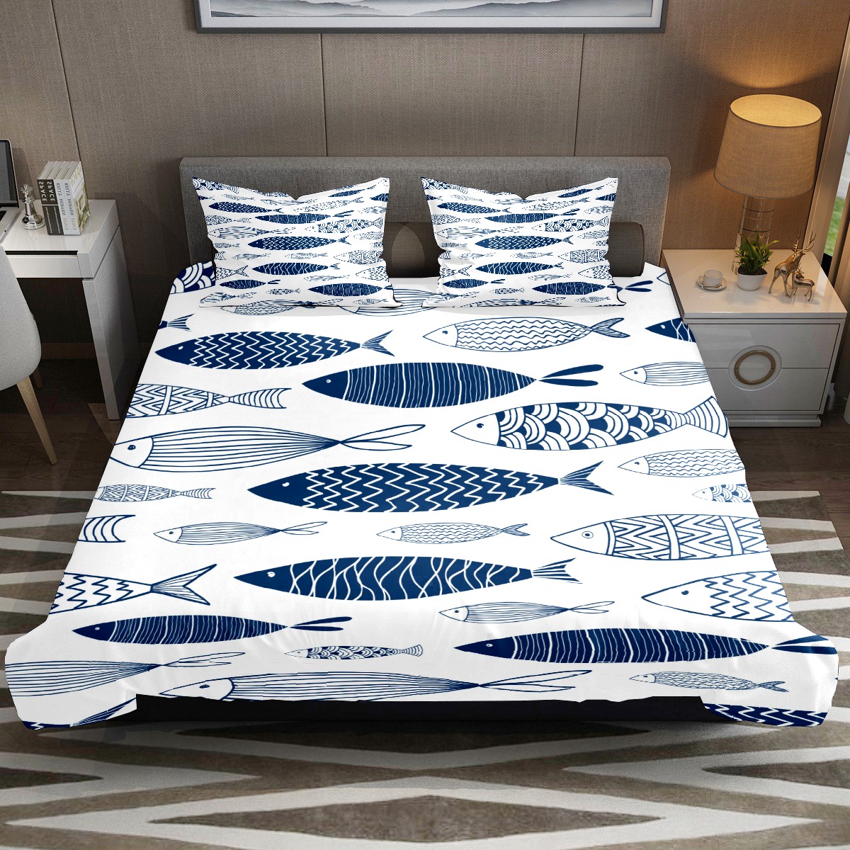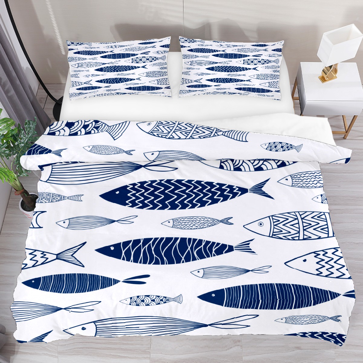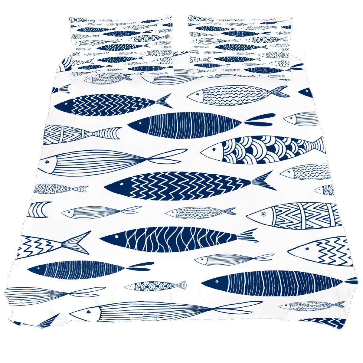 Duvet Cover Twin Cartoon Fish Pattern 3pcs Bedding Duvet Cover Set Modern Quilt Cover Microfiber Comforter Cover with Button Closure with 2 Pillow Cases 1 Duvet Cover