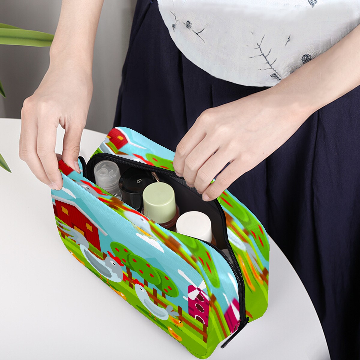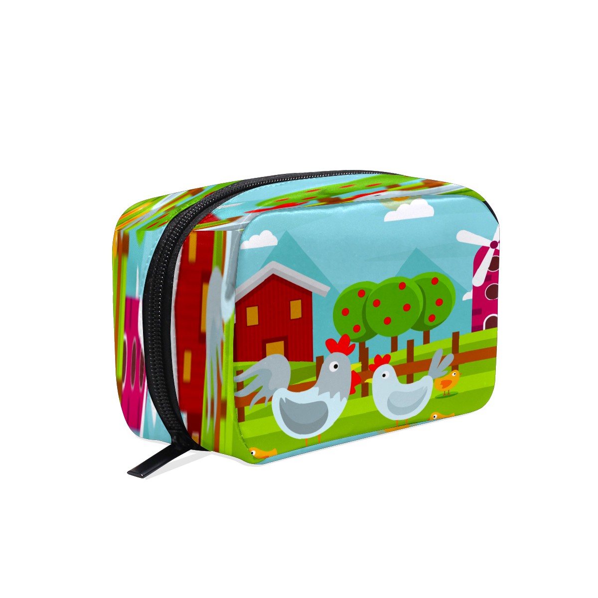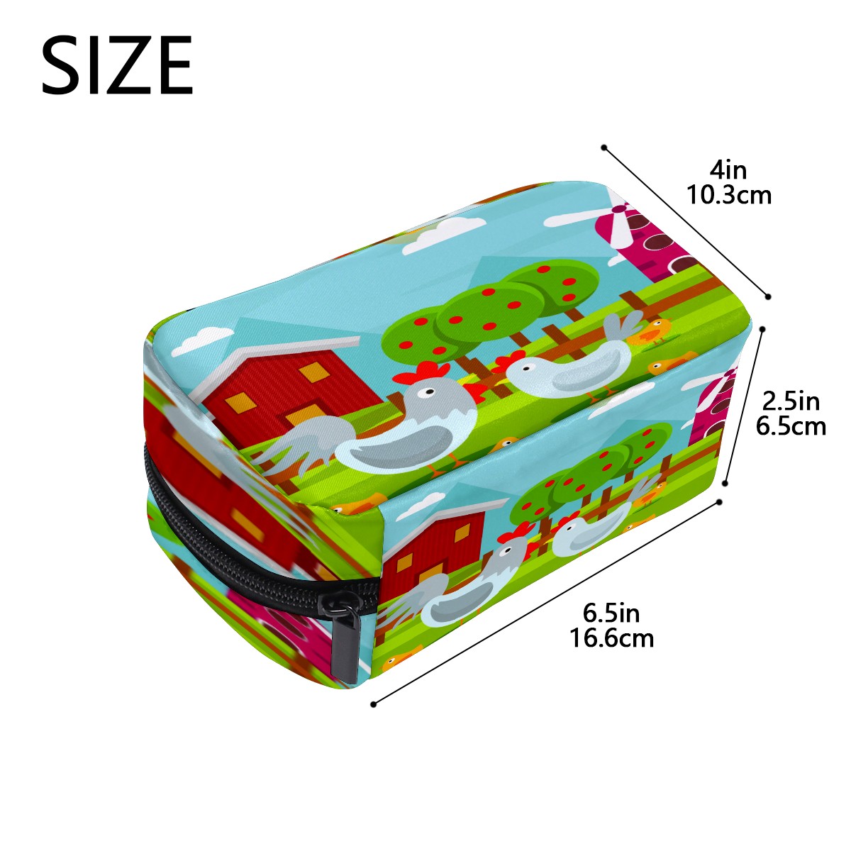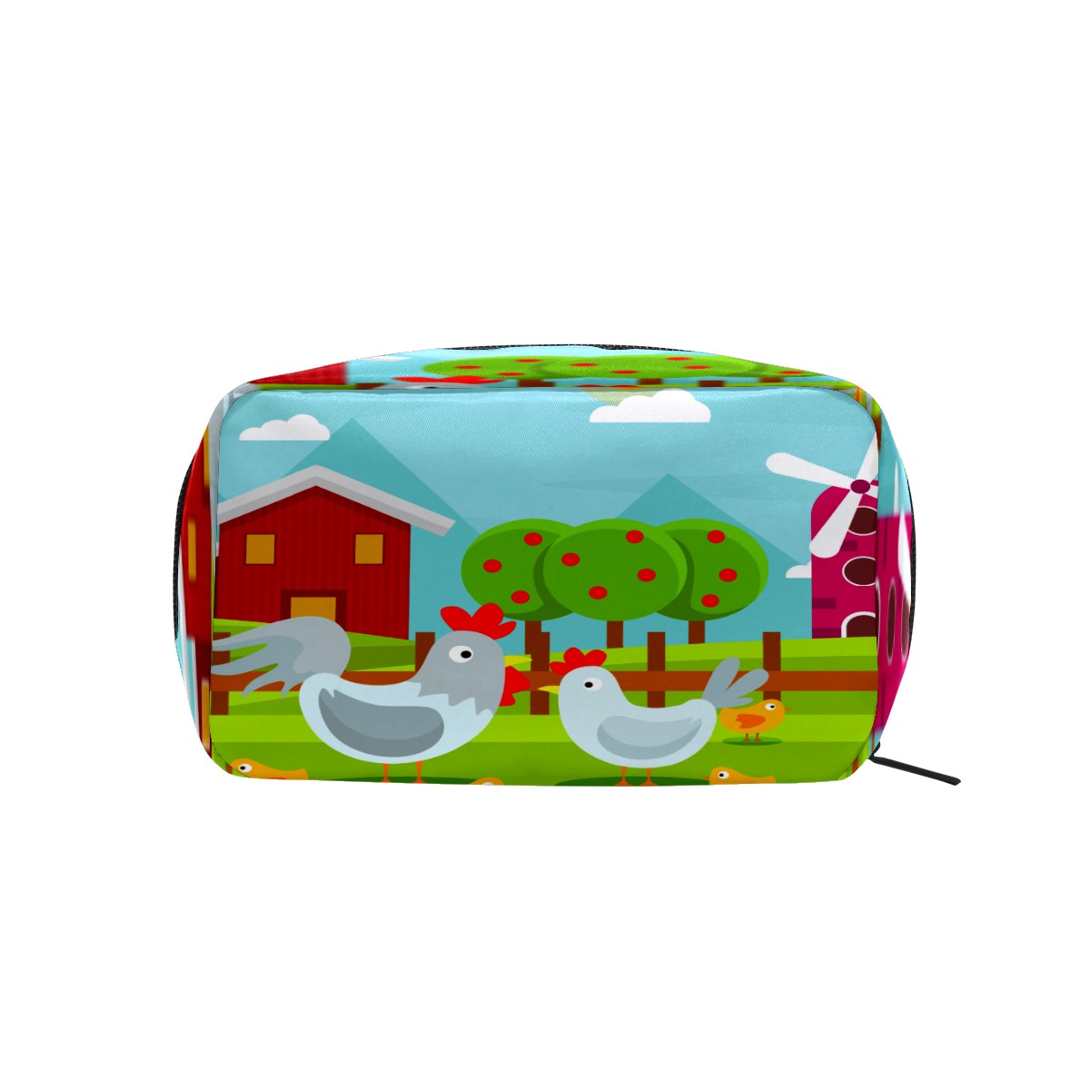 Cosmetic Bag for Women Girls Trave Makeup Bag Toiletry Case Pouch Accessories Organizer Cartoon Farm Chicken Rooster Family