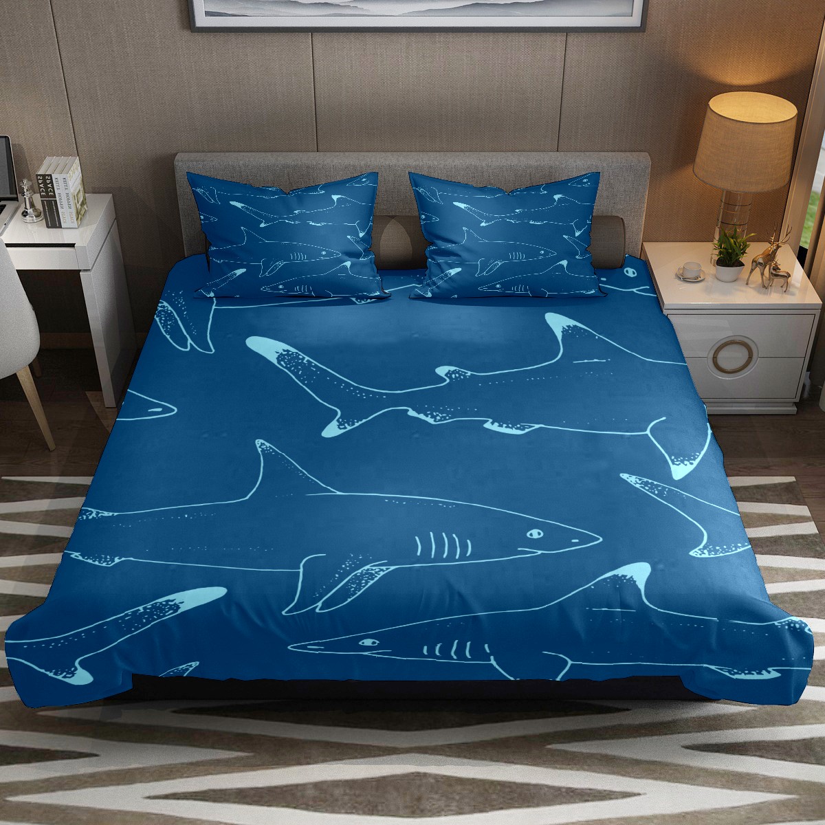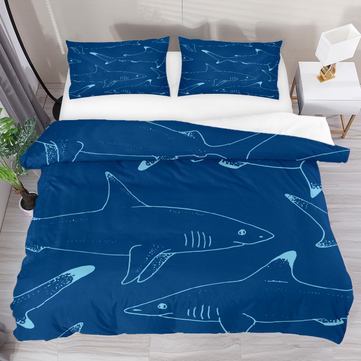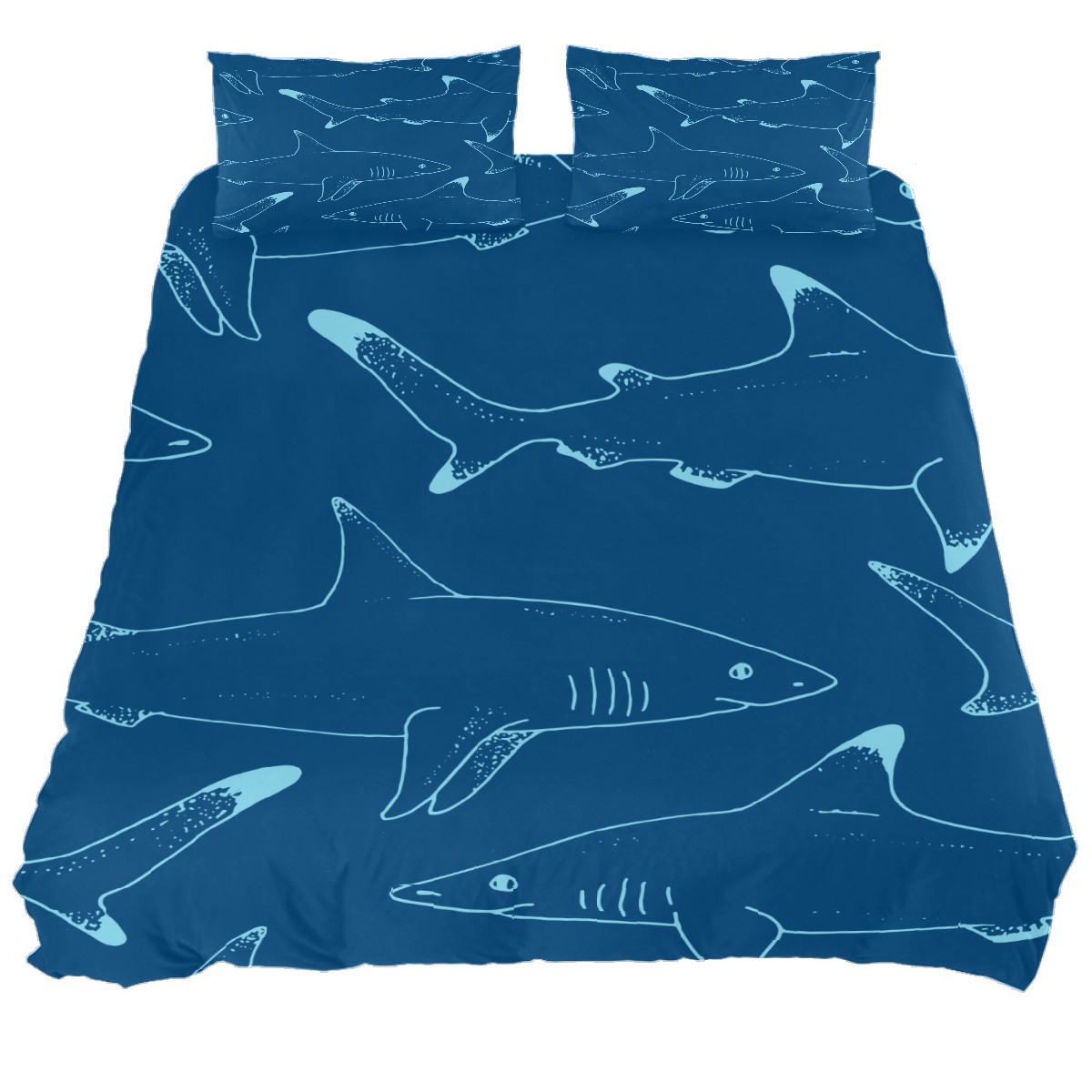 Duvet Cover Twin Blue Shark Sea Fish 3pcs Bedding Duvet Cover Set Modern Quilt Cover Microfiber Comforter Cover with Button Closure with 2 Pillow Cases 1 Duvet Cover