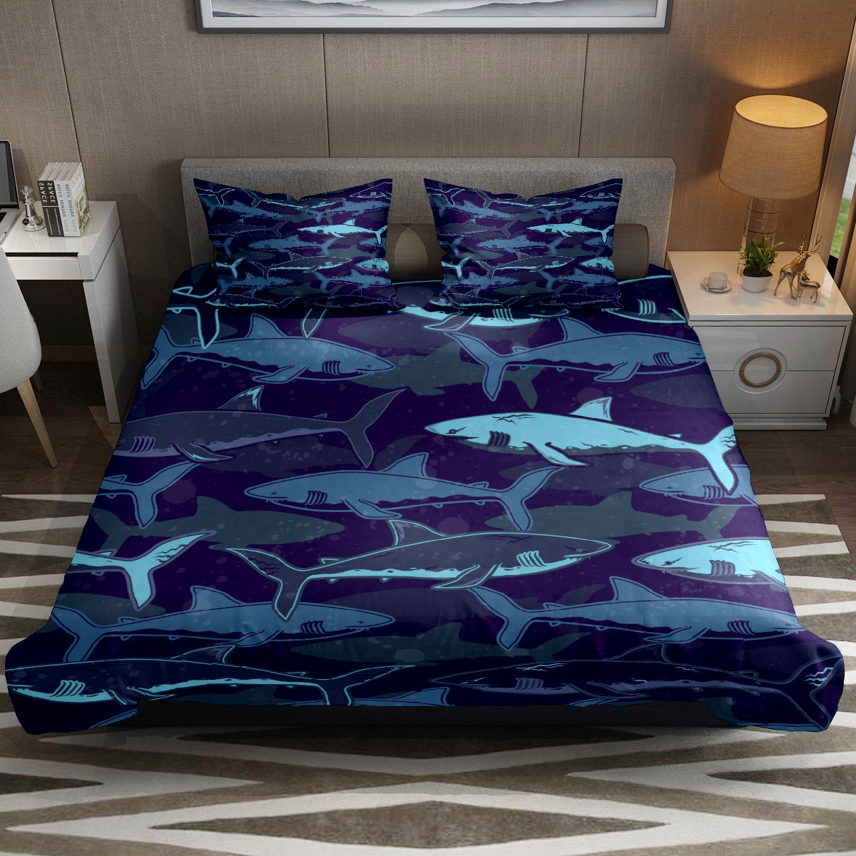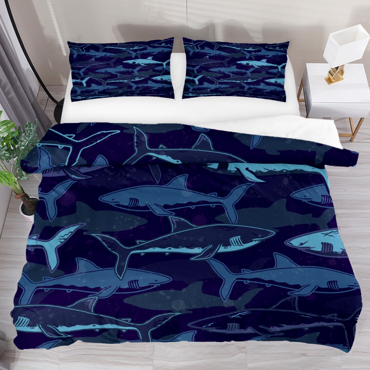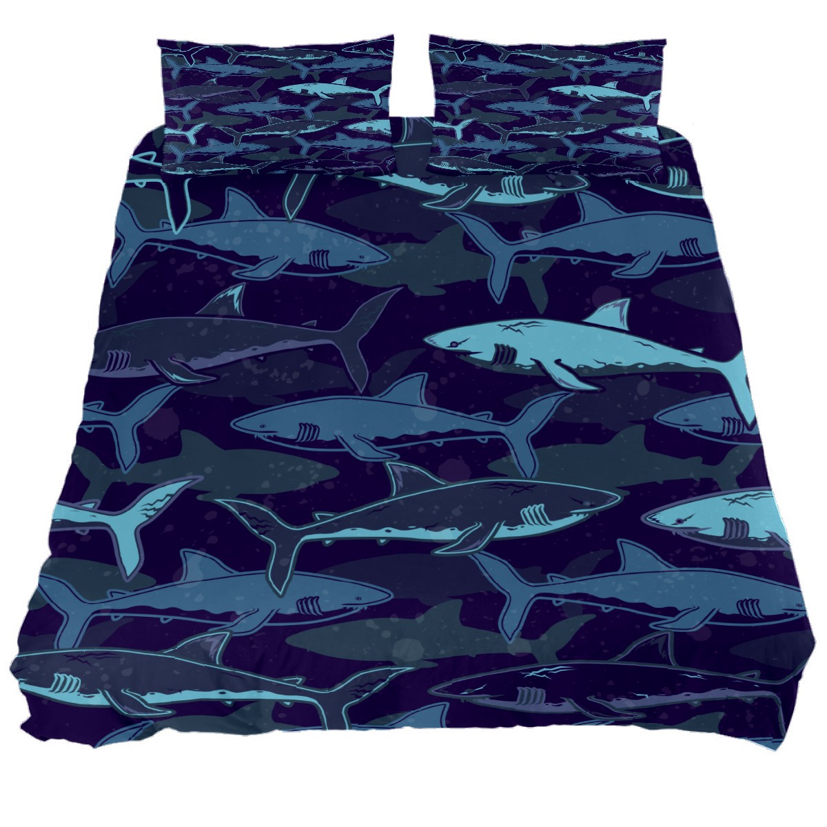 Duvet Cover Twin Blue Shark Pattern Marine Animal 3pcs Bedding Duvet Cover Set Modern Quilt Cover Microfiber Comforter Cover with Button Closure with 2 Pillow Cases 1 Duvet Cover