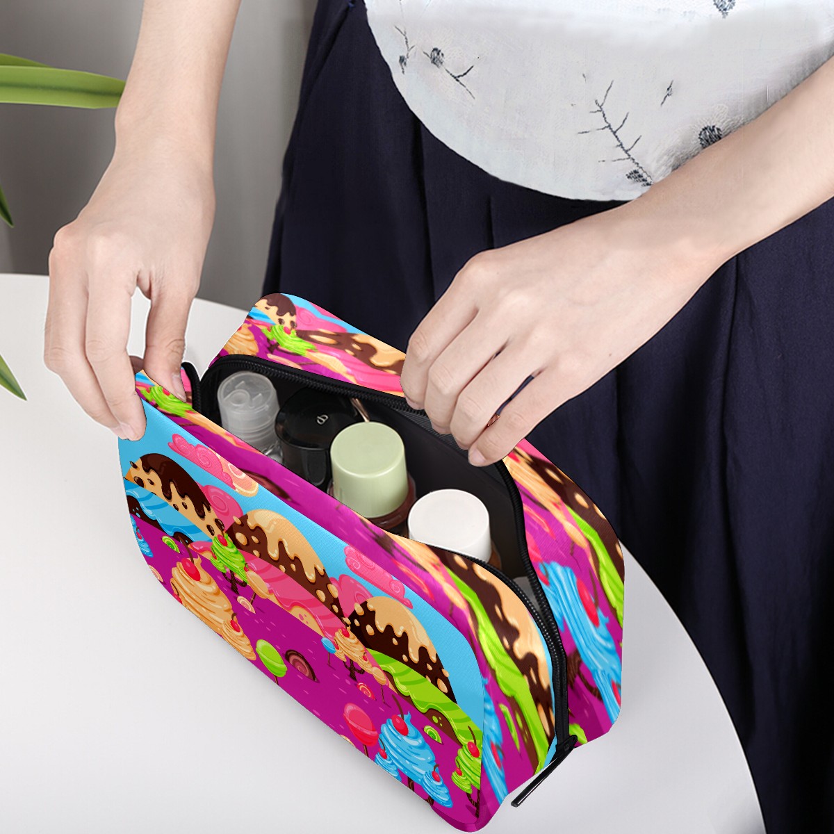 Cosmetic Bag for Women Girls Trave Makeup Bag Toiletry Case Pouch Accessories Organizer Cartoon Candy World Lollipop