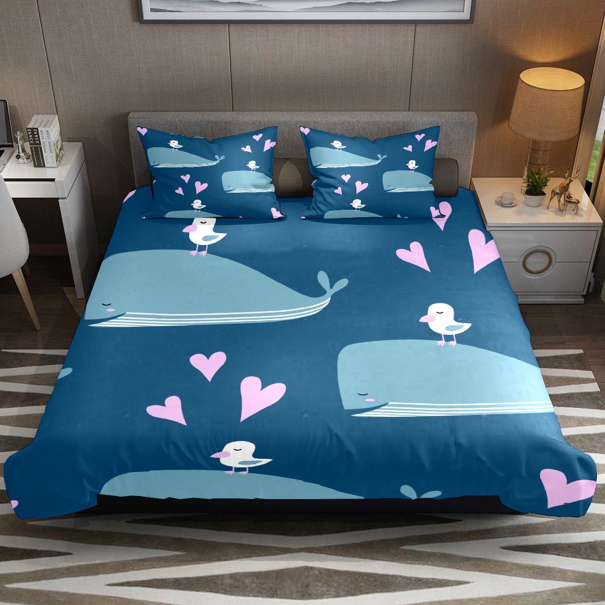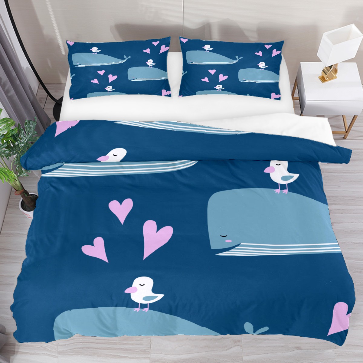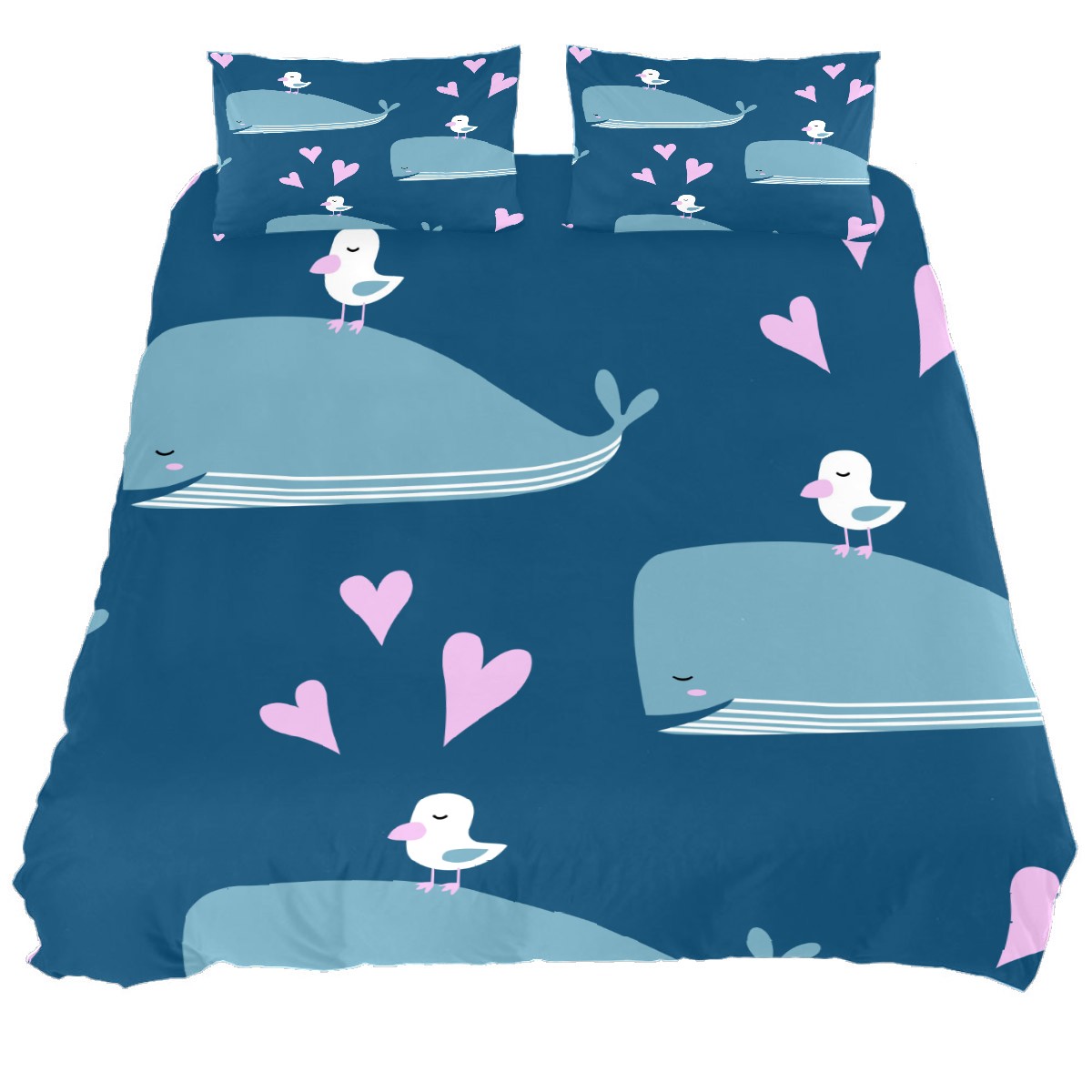 Duvet Cover Twin Blue Ocean Whale With Bird 3pcs Bedding Duvet Cover Set Modern Quilt Cover Microfiber Comforter Cover with Button Closure with 2 Pillow Cases 1 Duvet Cover