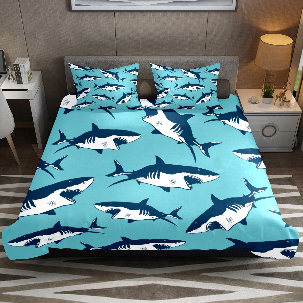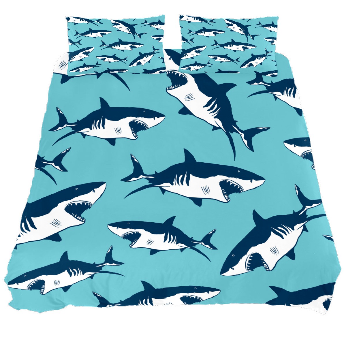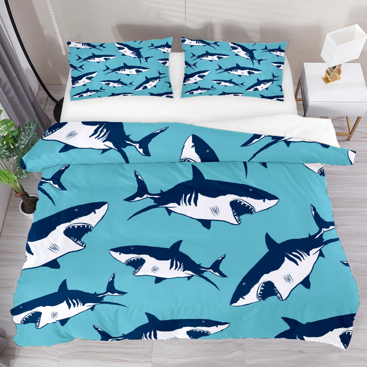 Duvet Cover Twin Blue Ocean Shark Pattern 3pcs Bedding Duvet Cover Set Modern Quilt Cover Microfiber Comforter Cover with Button Closure with 2 Pillow Cases 1 Duvet Cover