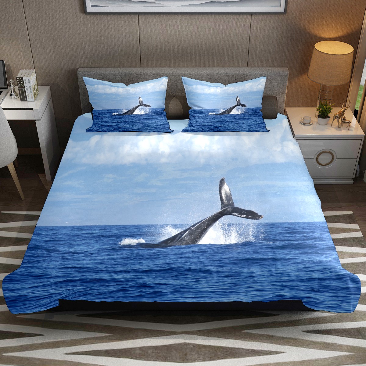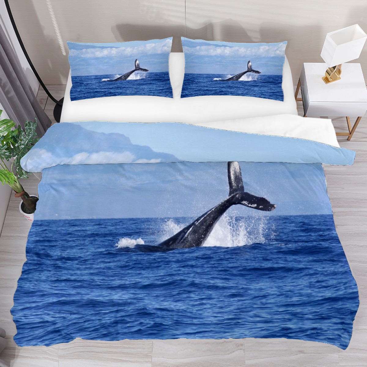 Duvet Cover Twin Blue Ocean Fish Whale Diving Water 3pcs Bedding Duvet Cover Set Modern Quilt Cover Microfiber Comforter Cover with Button Closure with 2 Pillow Cases 1 Duvet Cover