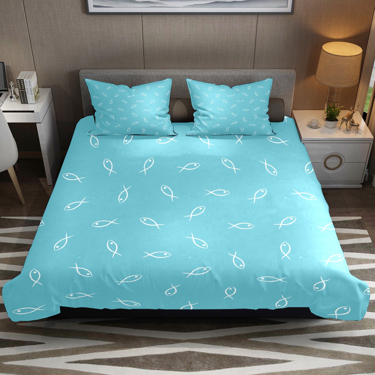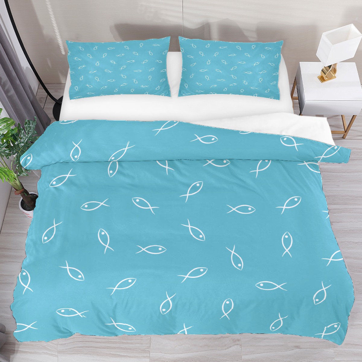 Duvet Cover Twin Blue Ocean Cute Fish 3pcs Bedding Duvet Cover Set Modern Quilt Cover Microfiber Comforter Cover with Button Closure with 2 Pillow Cases 1 Duvet Cover