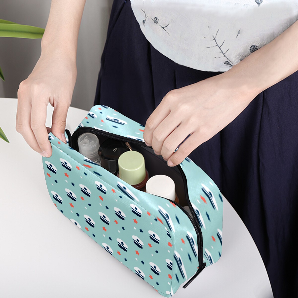 Cosmetic Bag for Women Girls Trave Makeup Bag Toiletry Case Pouch Accessories Organizer Blue Nautical Sailing Marine Stars Pattern