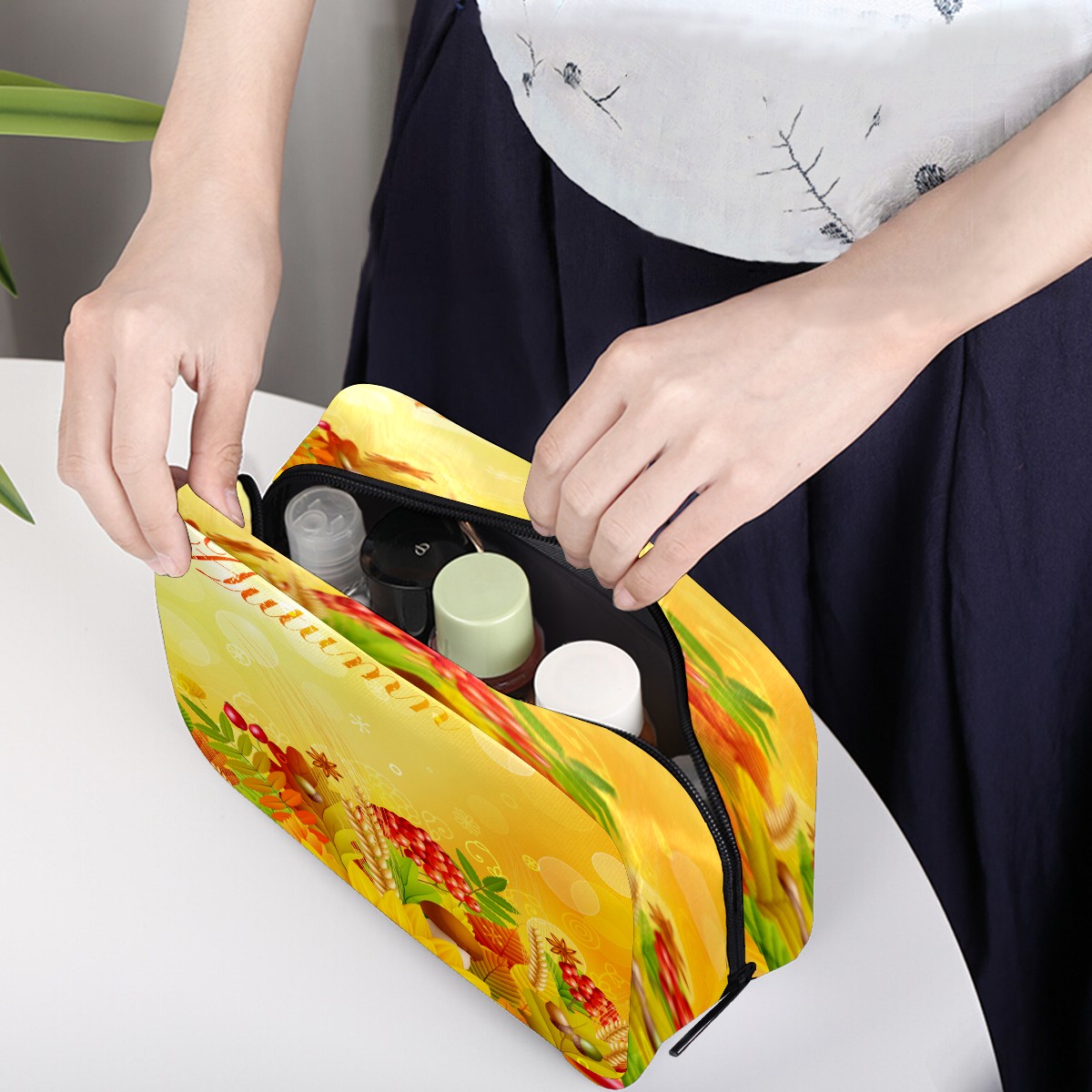 Cosmetic Bag for Women Girls Trave Makeup Bag Toiletry Case Pouch Accessories Organizer Autumn Vegetables Sunflowers Plants