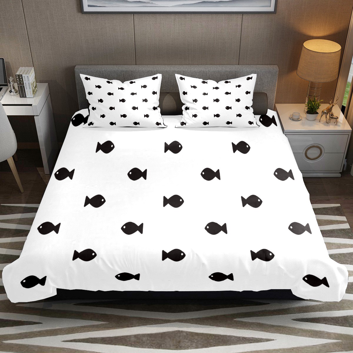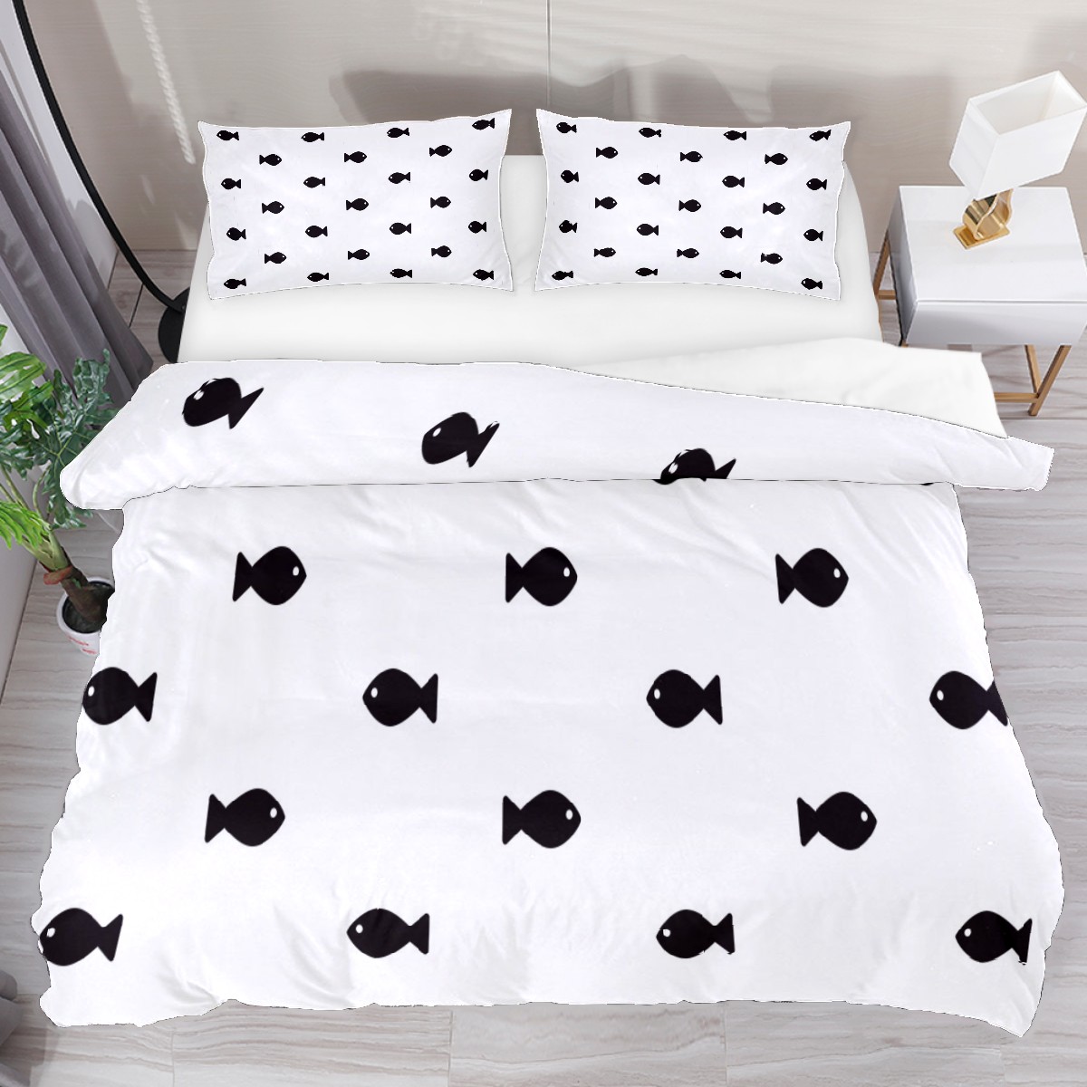 Duvet Cover Twin Black Fish Sealife 3pcs Bedding Duvet Cover Set Modern Quilt Cover Microfiber Comforter Cover with Button Closure with 2 Pillow Cases 1 Duvet Cover