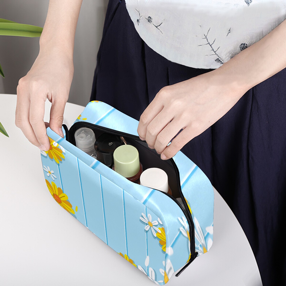 <p><br /></p><p><b>Cosmetic Bag Toiletry Travel Makeup Case Pouch Multi-function Organizer for Women</b></p><p><b>Size:</b> 6.5 x 4 x 2.5 inches(LxWxH) / 16.6 x 10.3 x 6.5 cm</p><p><b>Material: </b>Twill Weave + Elastic Band</p><p><br /></p><p><b>Features:</b></p><p><br /></p><p>- High Quality:These makeup bags are Lightweight, Durable, Waterproof and made out of Light and Twill Weave. Size: 8" x 2.5" x 5.5" / 20.3 x 6.35 x 14cm (LxWxH)</p><p><i>- </i>Multiple compartments for different requests of storage: Have 1 main compartment and 2 lipstick pockets and 3 inner pockets, convenient to store your lipstick, brushes, eyebrow pencils, mascara, air cushion and powder</p><p><i>- </i>Multifuncation: Each makeup bag have One Main Bag and five Compartments, can hold your Lipstick, tweezers, eyebow pencils, perfume£¬brush or other grooming items in place,good for sorting cosmetics and it's easy to find the items you need.</p><p>- New Design:Simple, compact and lightweight design is easily held in handbag.With High-quality Zipper,nice stitching and sewing ensure smooth opening and closing</p><p>-The travel makeup case, also can be a travel toiletry bag, electronic accessories bag, small camera bag, suitable for taking exactly what you need, anywhere, at any time</p><p><b>If you have any question, please feel free to contact us!</b></p><p><br /></p>