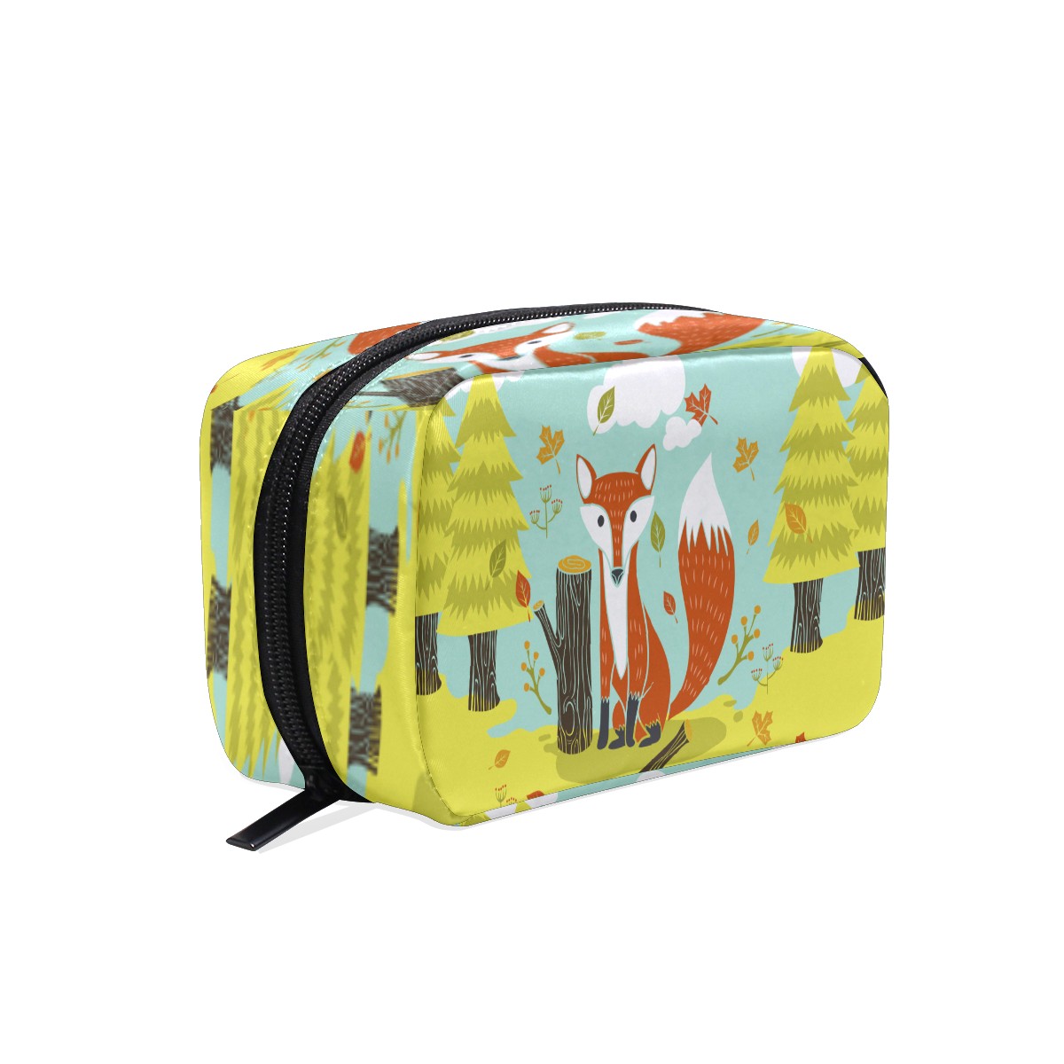 Cosmetic Bag for Women Girls Trave Makeup Bag Toiletry Case Pouch Accessories Organizer Autumn Forest Fox With Tree Leaves