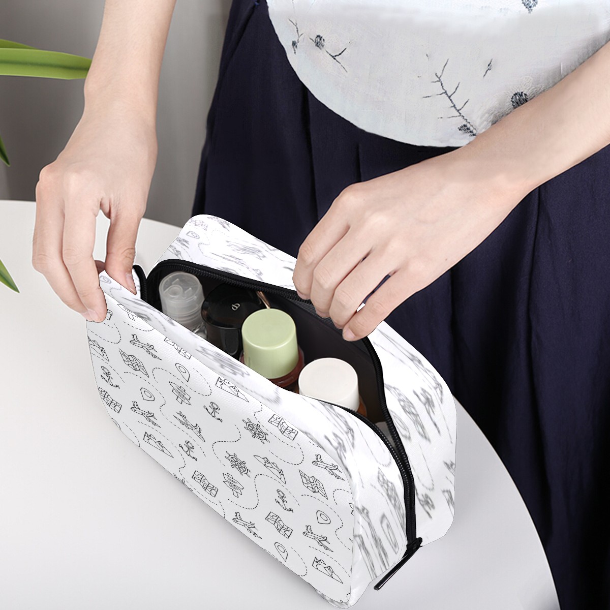 Cosmetic Bag for Women Girls Trave Makeup Bag Toiletry Case Pouch Accessories Organizer Anchor Rudder Airplane Pattern