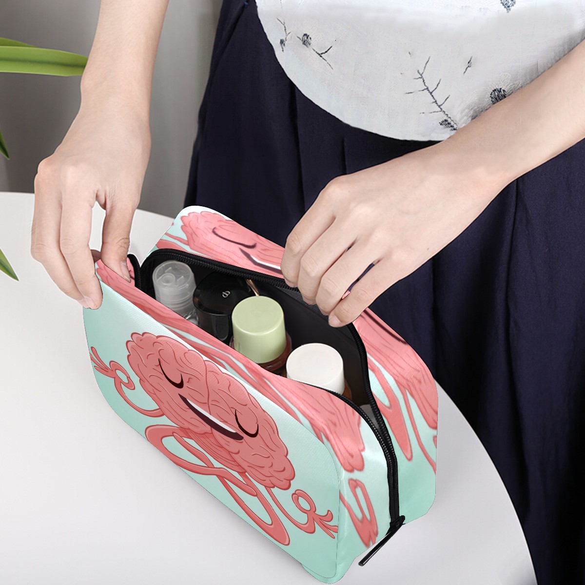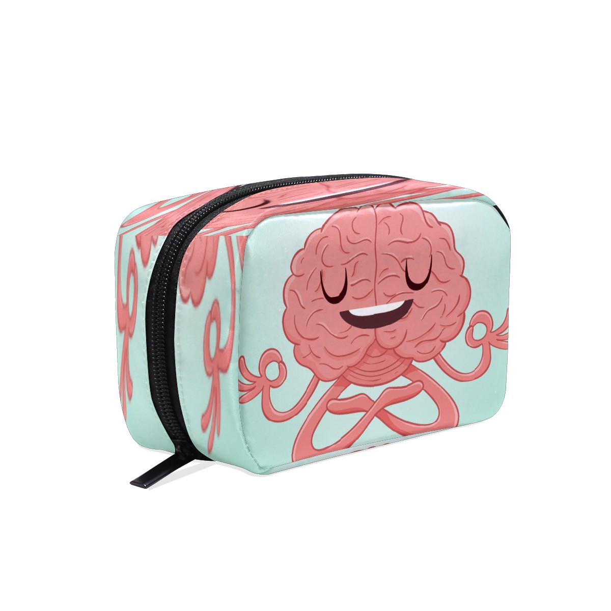 Cosmetic Bag for Women Girls Trave Makeup Bag Toiletry Case Pouch Accessories Organizer Funny Caroton Brain Doing Yoga