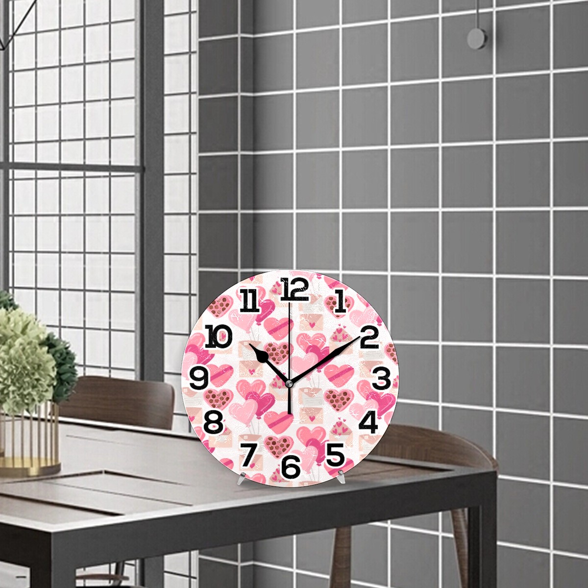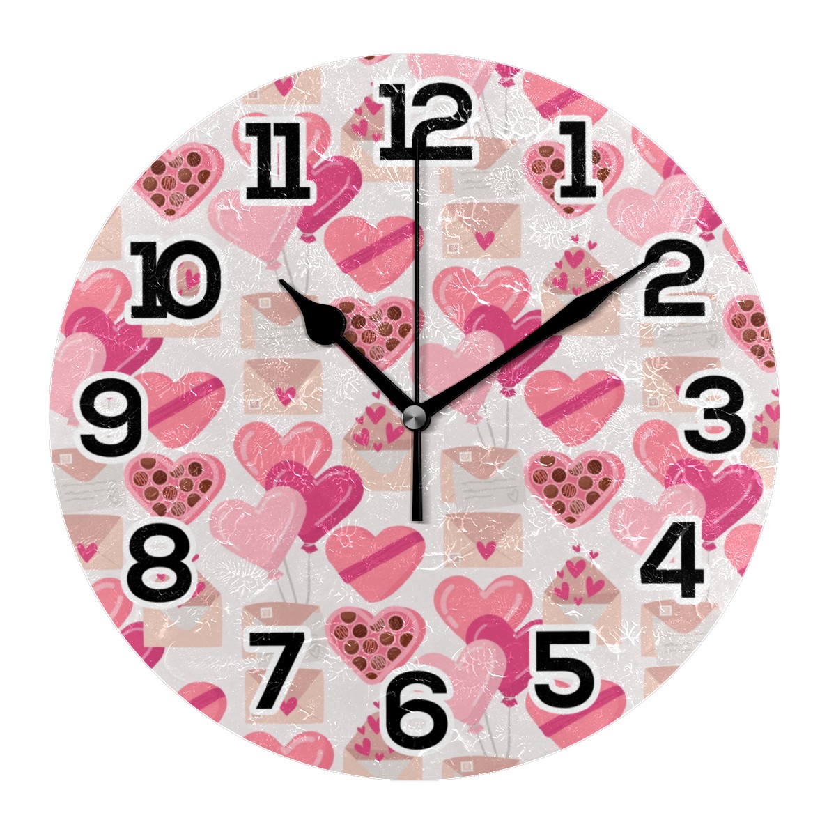 clock Valentine's Day Non Ticking Silent Wall Clocks Art for Living Room Kitchen Bedroom Office School(9.5 Inch,Arabic Numerals)