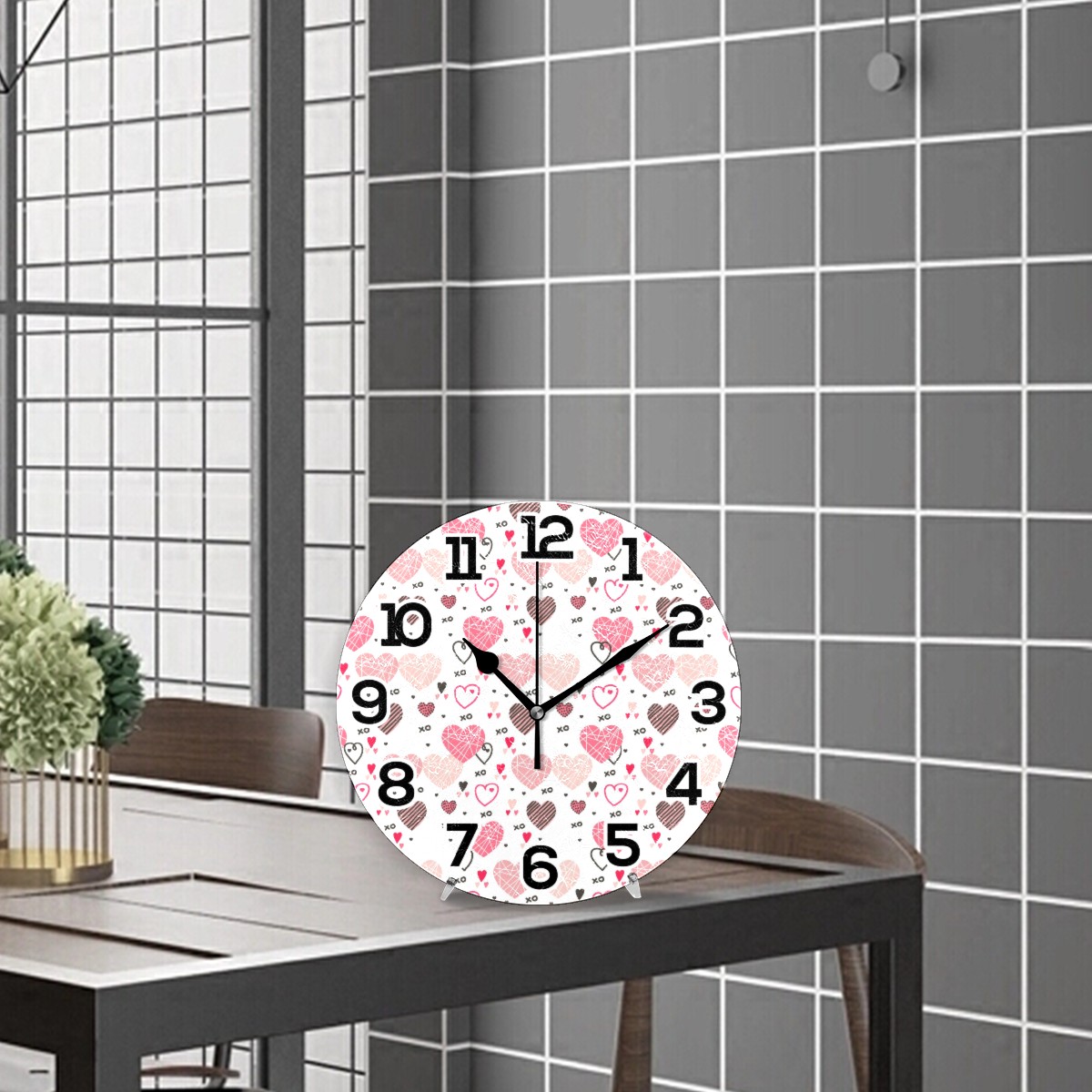 clock Valentine Hearts Love Non Ticking Silent Wall Clocks Art for Living Room Kitchen Bedroom Office School(9.5 Inch,Arabic Numerals)