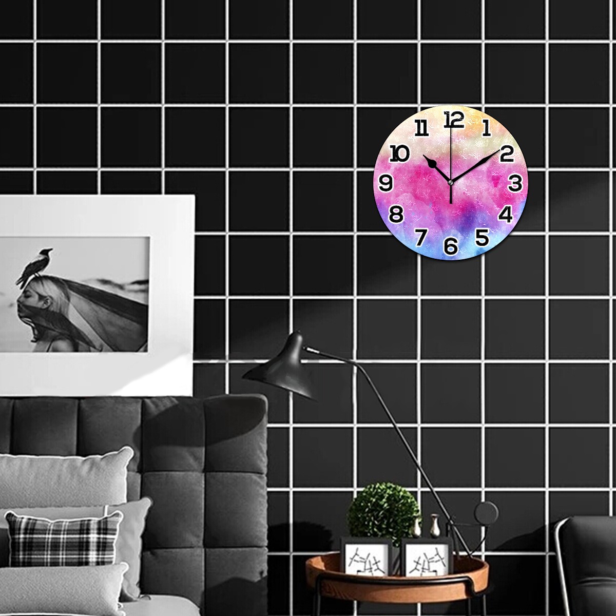 • <p>Size: 9.8x0.2 inch (25x0.5 cm)</p> <p></p> <p></p> <p>Material: Acrylic, oil Painting Dial, no frame</p> <p></p> <p></p> <p>Design: Silent Non-ticking round wall clock(1 "AA" battery is required, not included)The vivid pattern is printed by proven printing technology which will keep pattern from fading.&nbsp;a good battery can be used for more than one year, energy saved;&nbsp;Easy to stand on the desk and with hook to hanging on the wall.</p> <p></p> <p></p> <p>Applicable Scene:High quality silent quartz movement, keeps accurate time. It is perfect for bedroom, living room, study room, bathroom, coffee shop, office, conference room farm house and even suitable for reading.</p> <p></p> <p></p> <p>Best Gift:A perfect choice for&nbsp;christmas&nbsp;gift,children's day gift,bridal gift, anniversary gift, mothers day gift,fathers day gift, birthday present, holiday gift etc.</p>