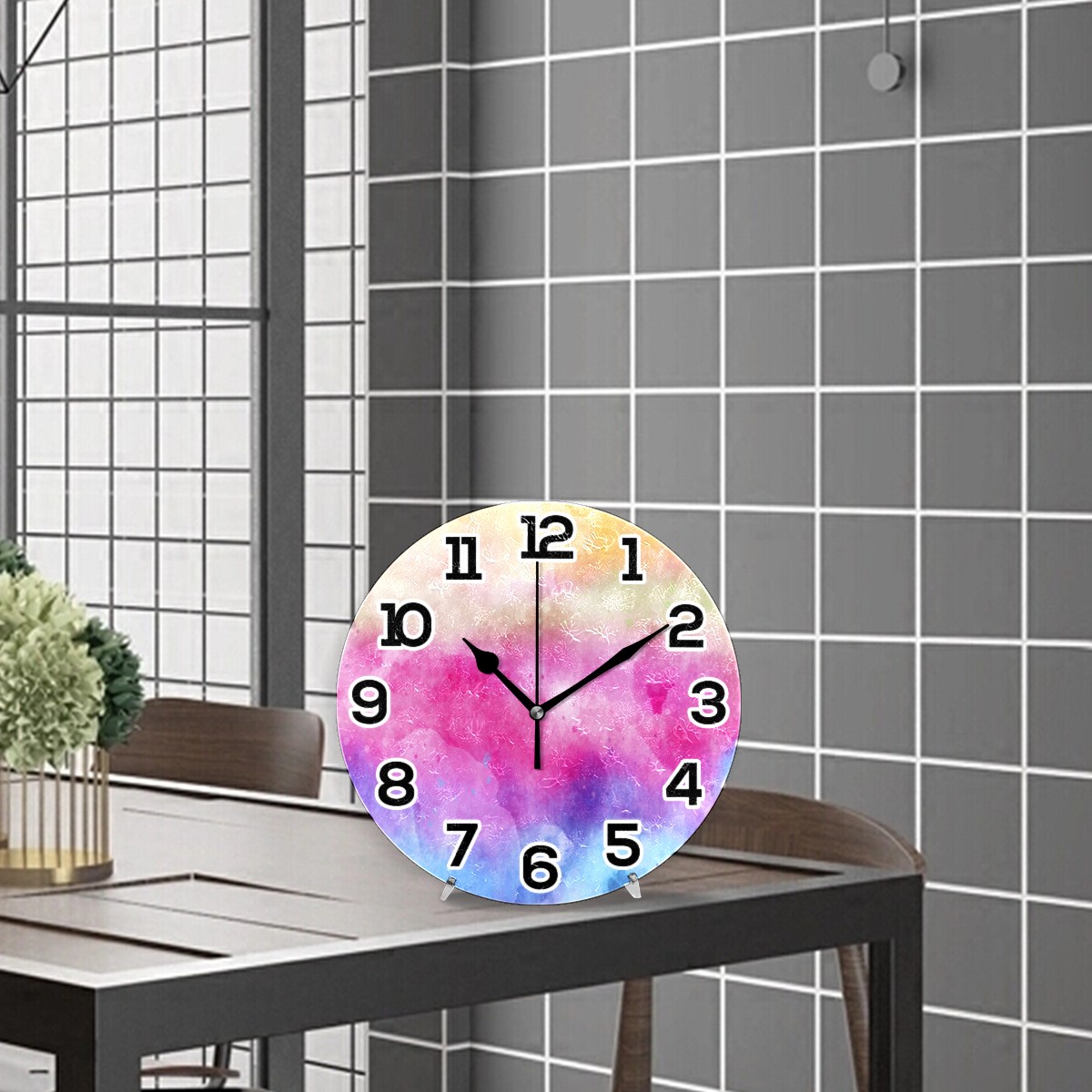 <p>Size: 9.8x0.2 inch (25x0.5 cm)</p> <p></p> <p></p> <p>Material: Acrylic, oil Painting Dial, no frame</p> <p></p> <p></p> <p>Design: Silent Non-ticking round wall clock(1 "AA" battery is required, not included)The vivid pattern is printed by proven printing technology which will keep pattern from fading.&nbsp;a good battery can be used for more than one year, energy saved;&nbsp;Easy to stand on the desk and with hook to hanging on the wall.</p> <p></p> <p></p> <p>Applicable Scene:High quality silent quartz movement, keeps accurate time. It is perfect for bedroom, living room, study room, bathroom, coffee shop, office, conference room farm house and even suitable for reading.</p> <p></p> <p></p> <p>Best Gift:A perfect choice for&nbsp;christmas&nbsp;gift,children's day gift,bridal gift, anniversary gift, mothers day gift,fathers day gift, birthday present, holiday gift etc.</p>