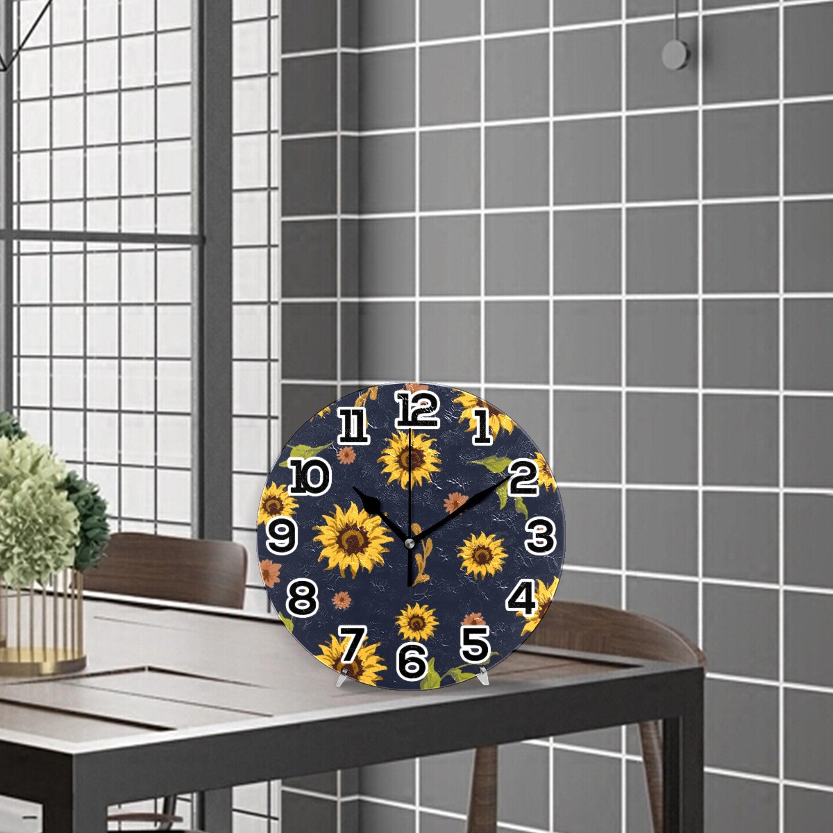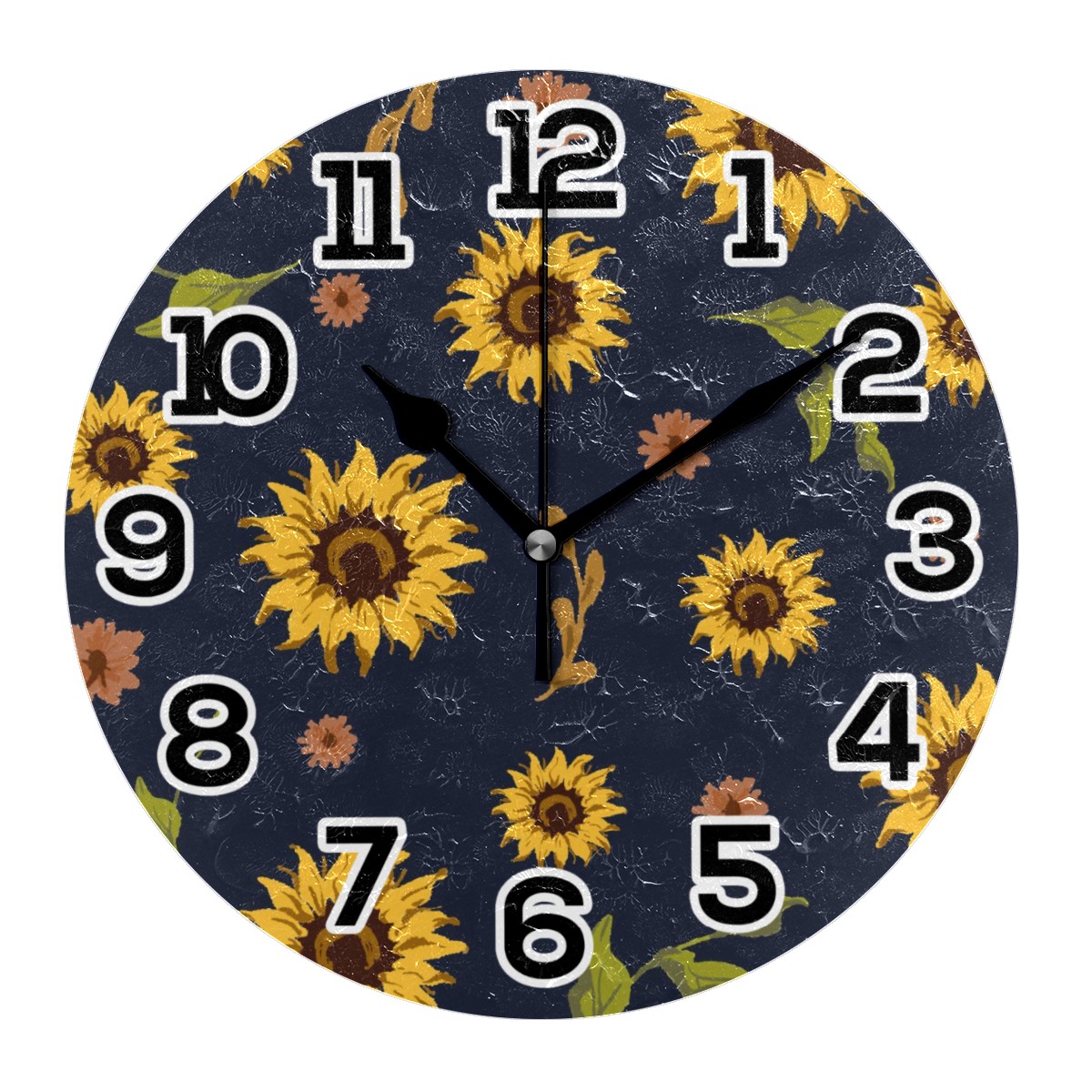 clock Sunflowers Non Ticking Silent Wall Clocks Art for Living Room Kitchen Bedroom Office School(9.5 Inch,Arabic Numerals)
