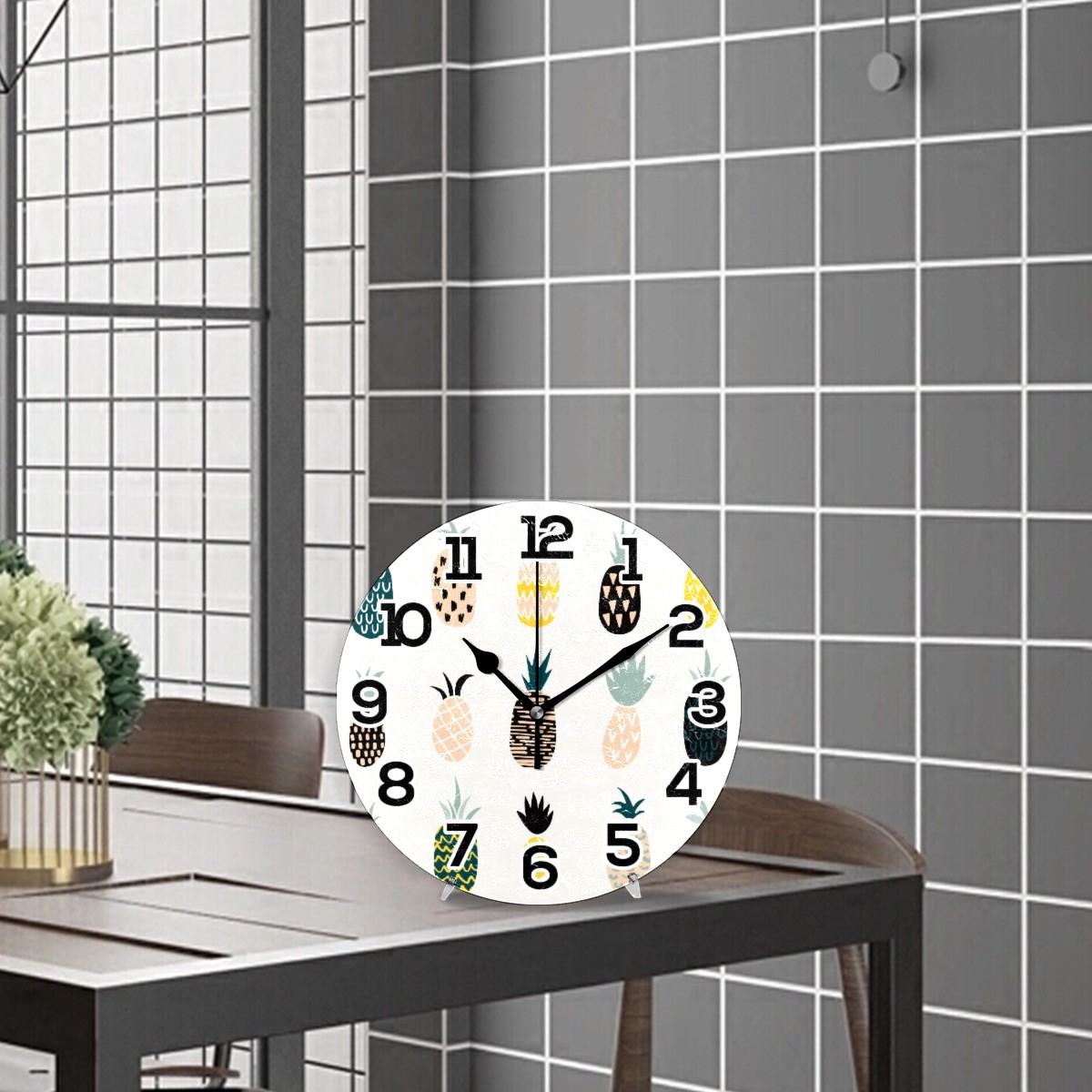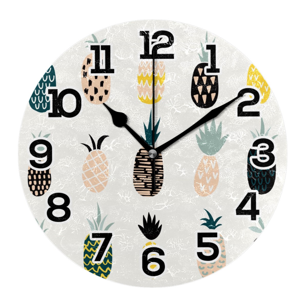 clock Pineapple Non Ticking Silent Wall Clocks Art for Living Room Kitchen Bedroom Office School(9.5 Inch,Arabic Numerals)
