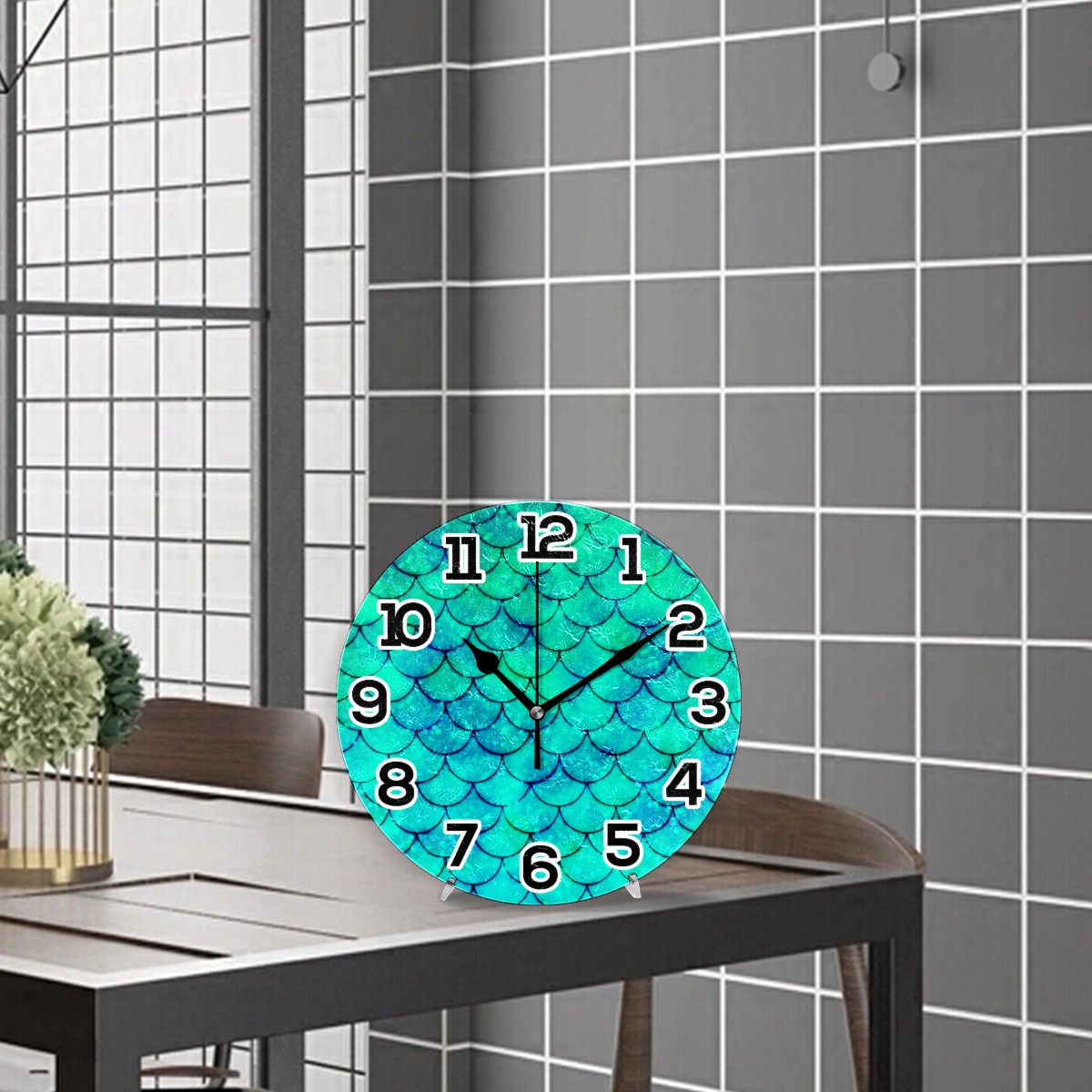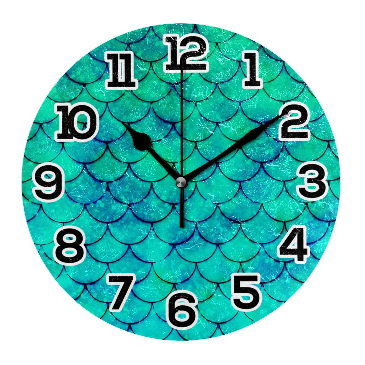 clock Green Mermaid Non Ticking Silent Wall Clocks Art for Living Room Kitchen Bedroom Office School(9.5 Inch,Arabic Numerals)