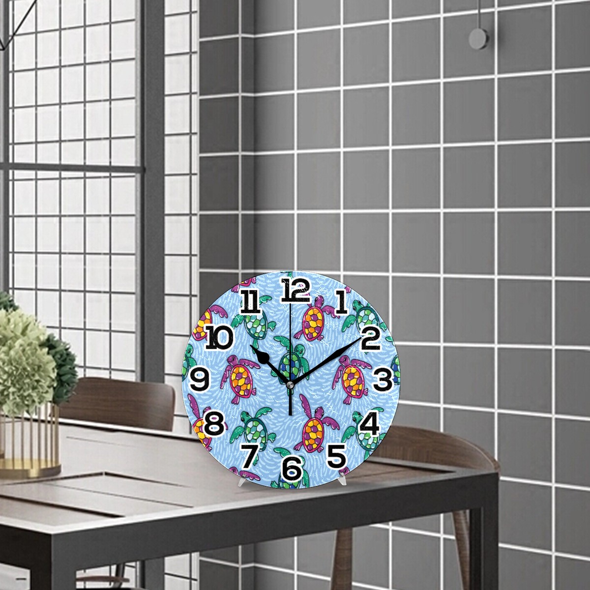 clock Multi Color Turtle Non Ticking Silent Wall Clocks Art for Living Room Kitchen Bedroom Office School(9.5 Inch,Arabic Numerals)